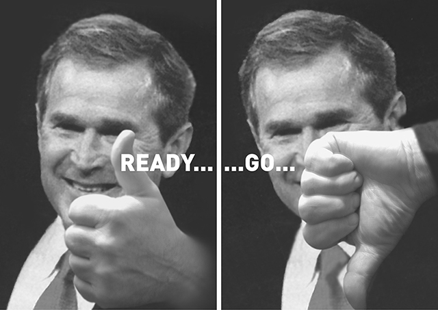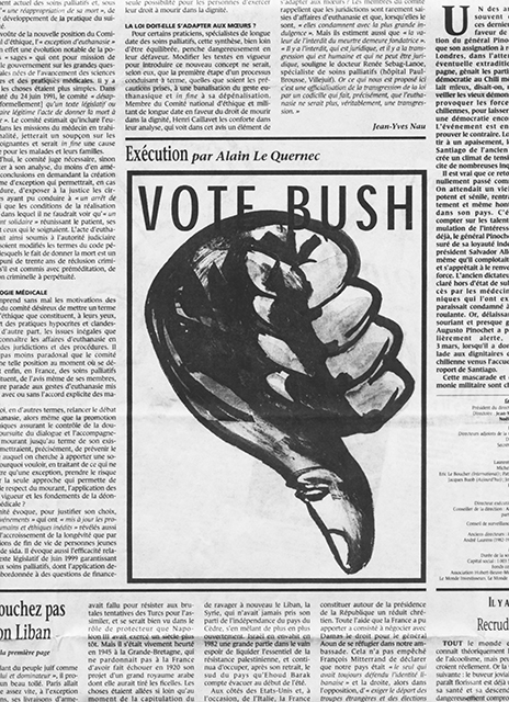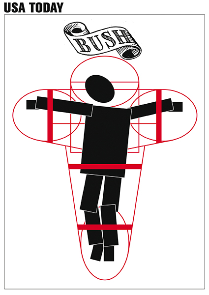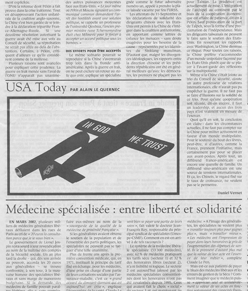 À son initiative, trois groupes parlementaires s’unissent pour éditer des cartes de protestation à envoyer à la maison blanche. Publiées également en dessins de presse dans le journal Le Monde, elles seront le début d’une rubrique Anti-bush ” USA TODAY”
