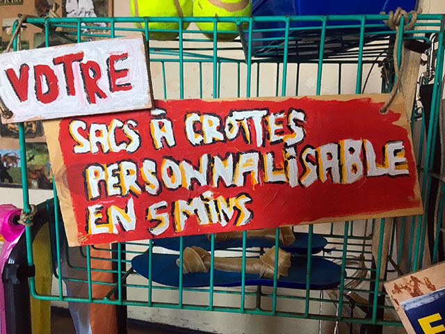 To earn a living and live his passion, he set up a shop selling customizable poop bags in parks. Between selling kibble and renting dogs to prevent loneliness on public benches, he paints animal portraits.
