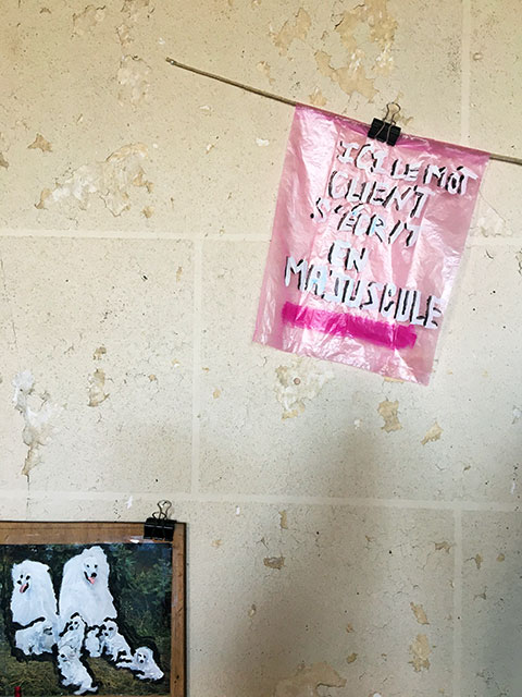 L’association Astérismes a invité l’artiste Anaïs Touchot pour être la commissaire de l’exposition Chiens, humains et autres partenaires qui réunit neuf artistes proches de son univers artistique. Si son thème de prédilection est le chien, “l’animal” devient ici le moyen de communication comportementale essentielle en cette période de COVID.