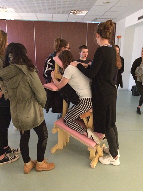 Based on the principle of a wellbeing center, Karma is a space for artistic relaxation located in the heart of the Iroise school.In this installation, the students can take time for themselves, experiment different relaxation techniques. From self-massage to acupressure, through to physical liberation and self-persuasion, they can release the pressures to which they are likely to be subjected.The Karma exhibition is an open place in order to listen to yourself and each other.