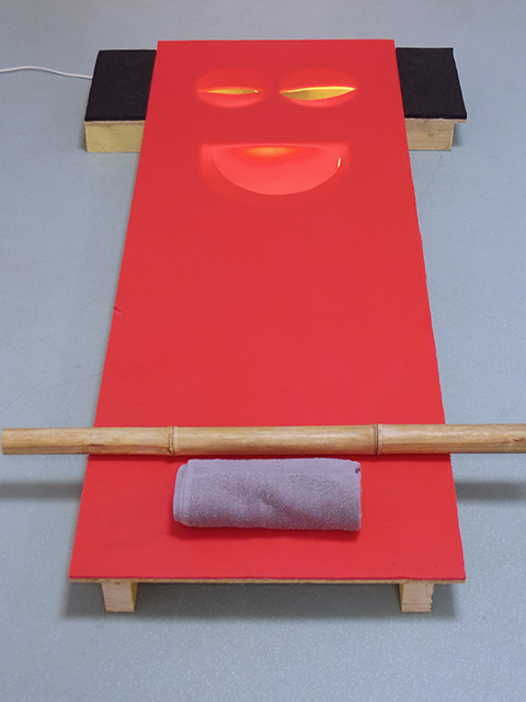 Matériaux de récupération, argile, aiguilles d’acupuncture, chevalets, cuir, encens, pompes à eau, tapis de gym, tronc