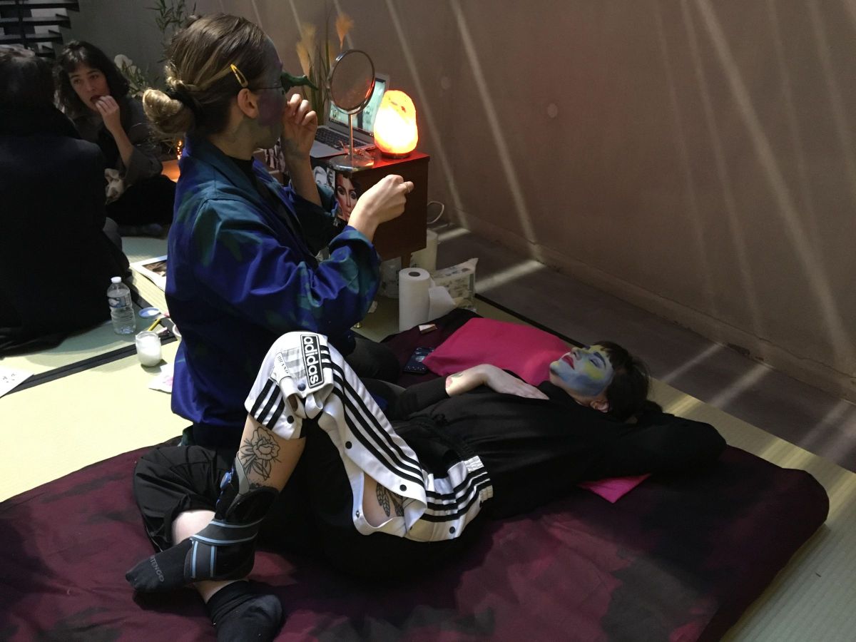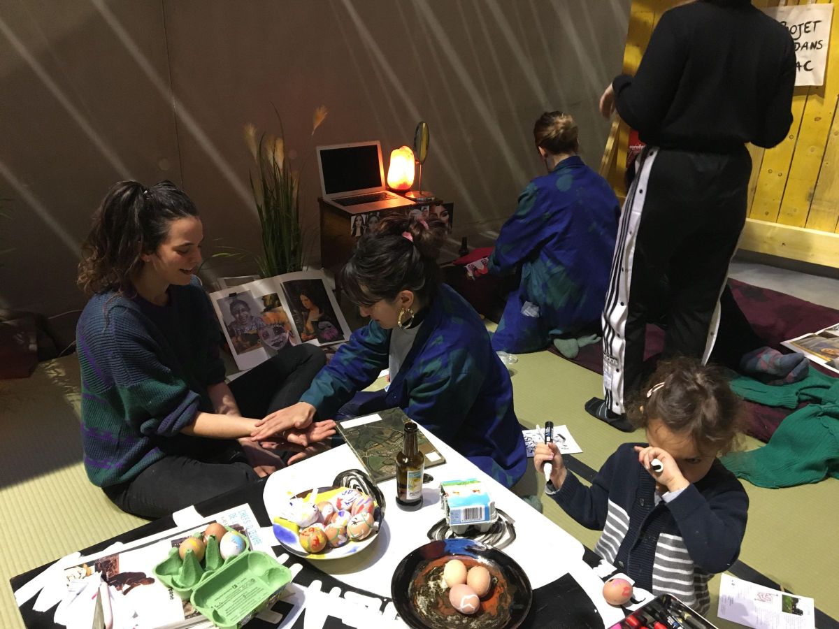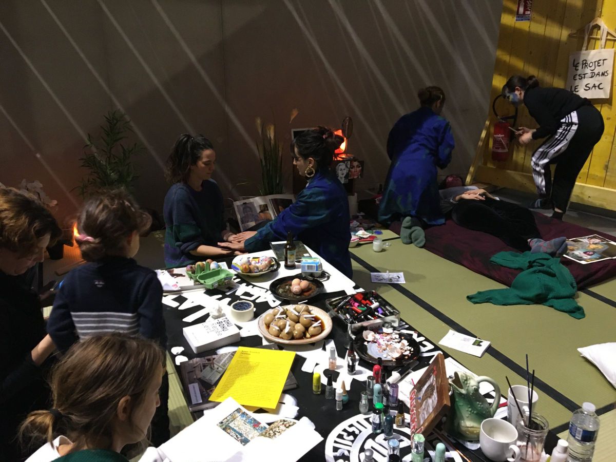 Dans une ambiance trash bien-être, venez sentir l’amour de la salle et laisser vous pimper par l’équipe qui par sa clairvoyance viendra harmoniser vos chakras. Avec un bar à œufs dur « yin et yang » (Elise Carron), des chants et transferts d’energies (Audrey Gleizes), une initiation au contouring (Johanna Rocard) et un salon nail art d’inspirations peintures du XXème siècle (Anais Touchot).