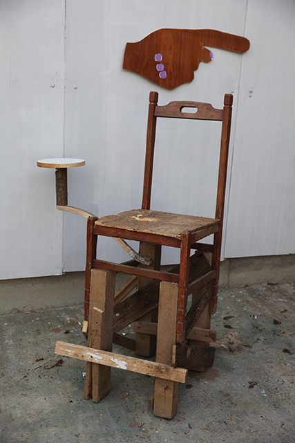 Anaïs Touchot is a builder, and one that respects the previous lives of her materials. Directed by the search for an informal economy, she connects her works to their location and sometimes encourages a curious, nosy audience, even during production. Sometimes, she works closely to the street, benefiting from a mutual influence, seizing the street’s substance, it sociability and inevitable instinct for territory. In our case, the street is our terrace, and the meddling audience is mainly the Sandwich cats family.