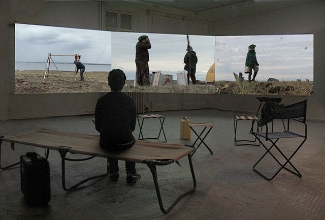 Installation 3 projections vidéo HD, sonores, Matériel de camping
