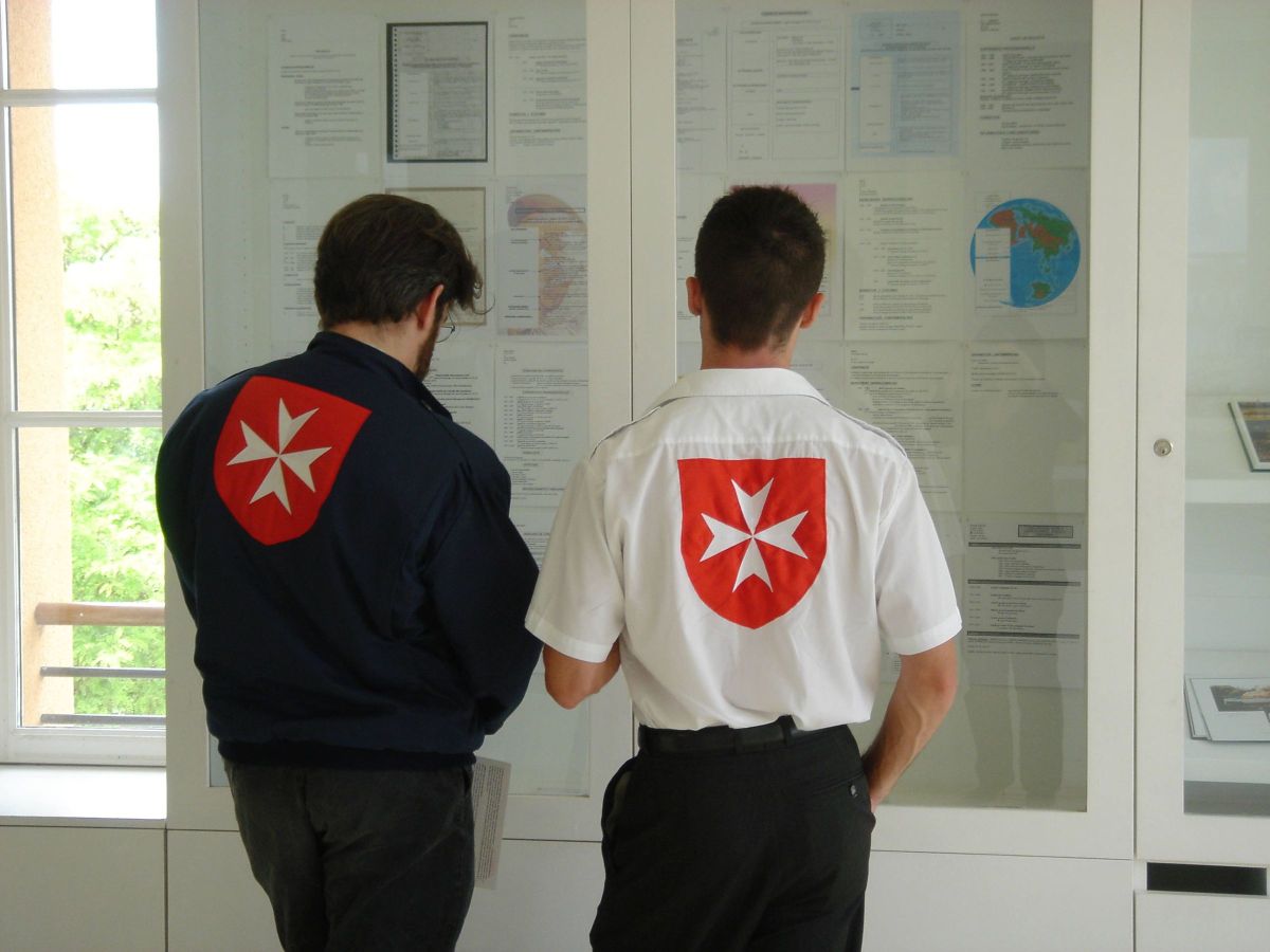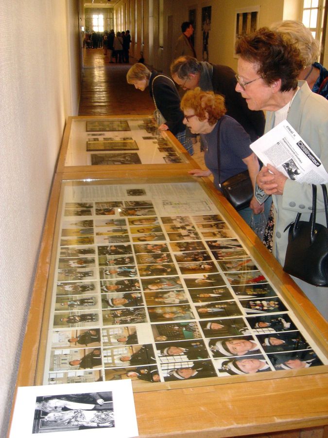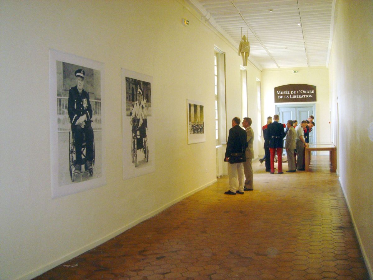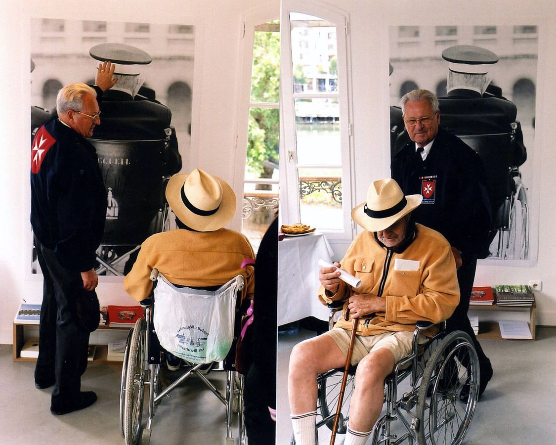Bénévoles de l’ordre de Malte accompagnants des invalides pour le vernissage devant la vitrine du Parcours du combattant (CV légionnaires)
