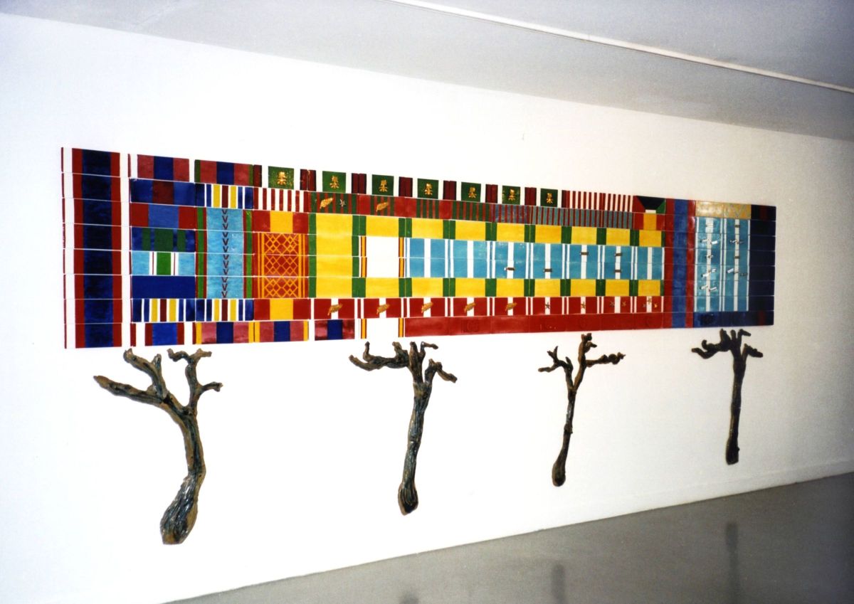 Jardin hongrois, 135 plaques émaillées en céramique et pieds de vigne en grès, collection du Fnac, La Défense, Paris