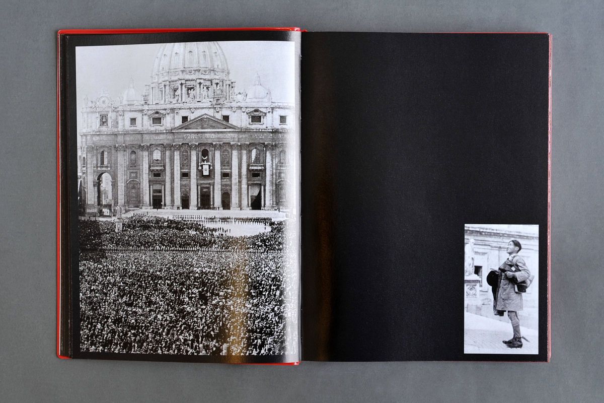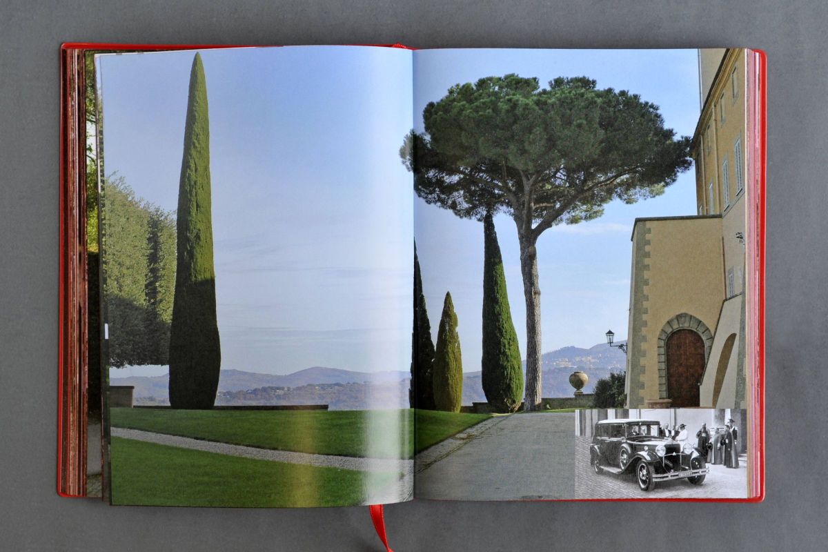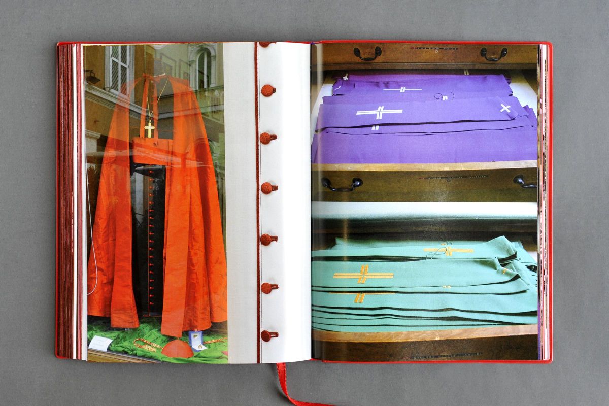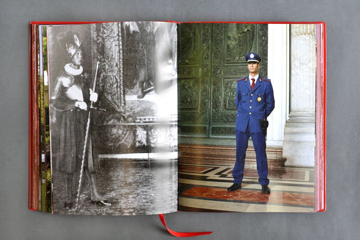 Accompagnés de papamobiles, de vanités ou de gisants insérés en médaillon, douze chapitres légendés en introduction permettent de se situer géographiquement, organisant des vues habituellement inaccessibles au public. De la Casina di Pio IV au Palazzo del tribunale, demeure d’un cardinal, en passant par les jardins de la cité, l’on aboutit à la Bibliothèque Apostolique et aux Archives Secrètes. De Castel Gandolfo où se trouve la Fattoria Pontificie, traversant les jardins, nous retournons à la cité vaticane via les échoppes d’articles religieux situées autour du Panthéon dans Rome.