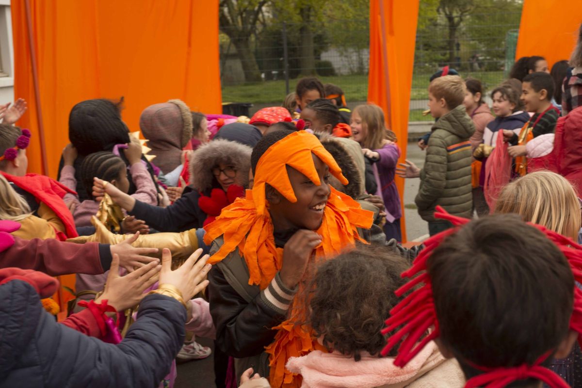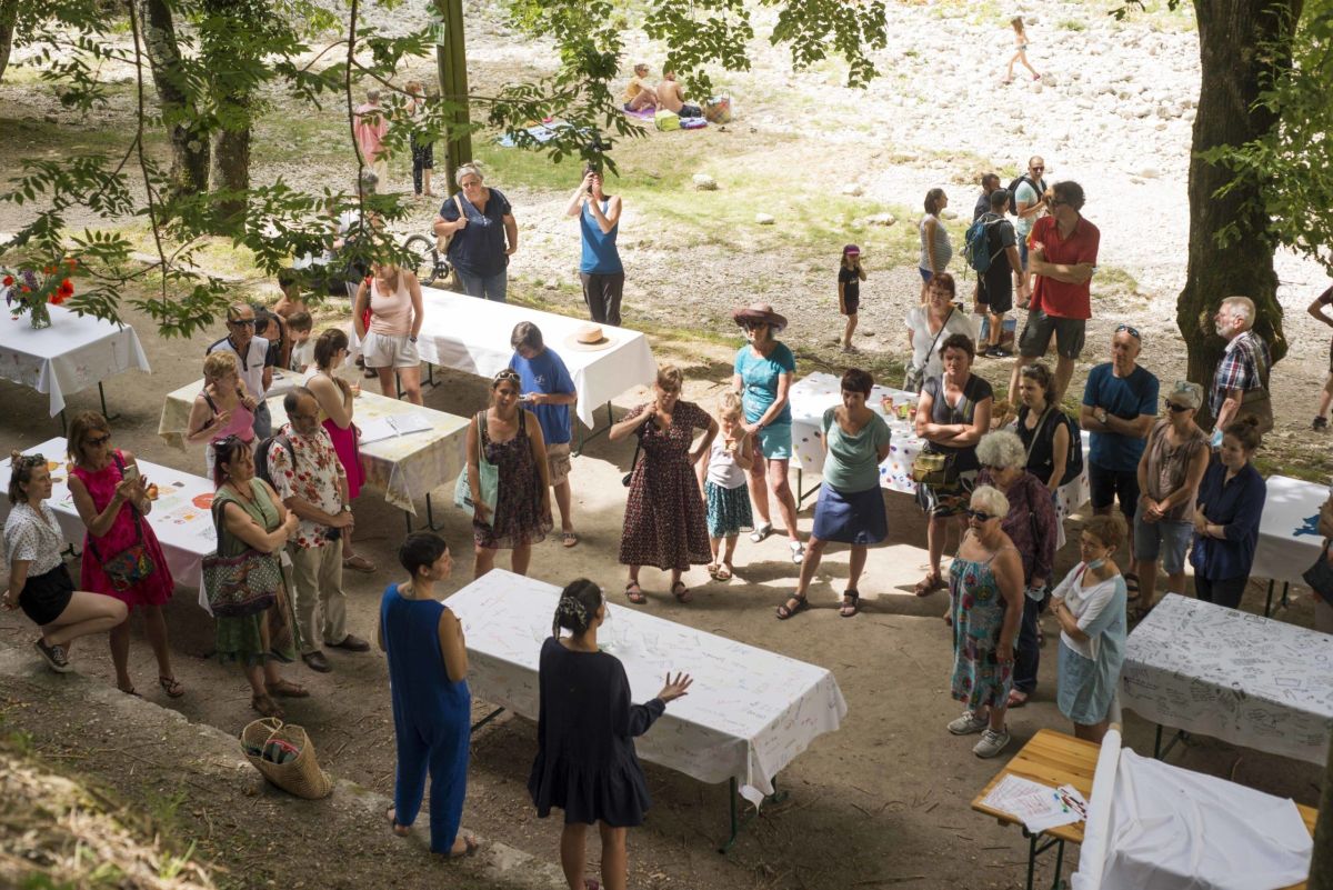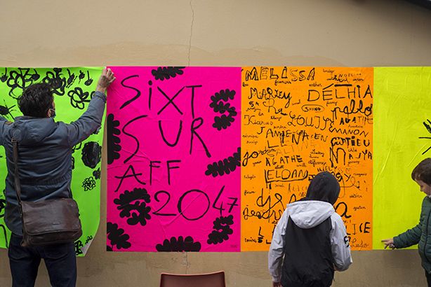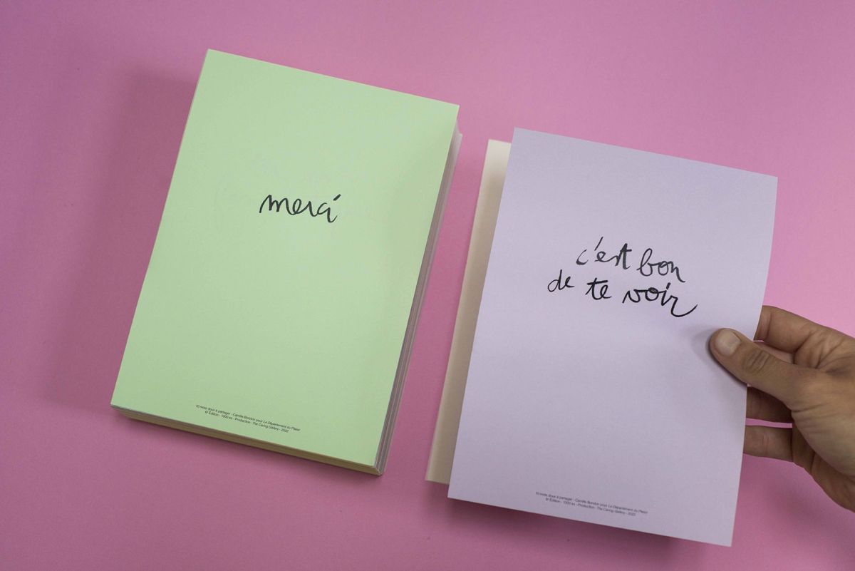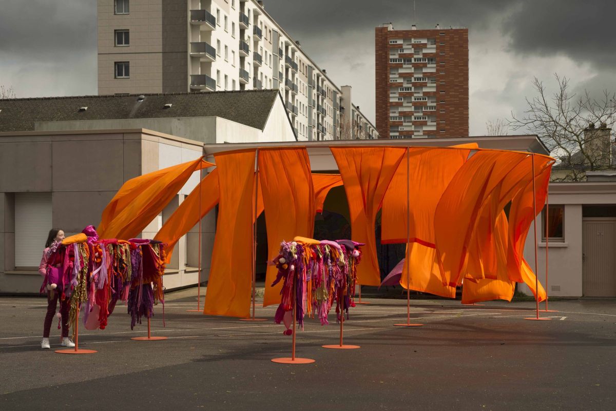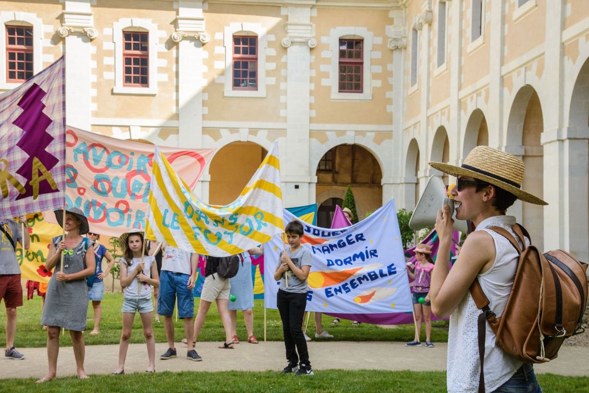Camille Bondon is a visual artist who collects the words, gestures and dreams of the people she encounters. She likes to talk about other peoples’ time, of the pleasures of daily life or the words that bring joy; of what we take away from a shared meal, what we’d like the future to look like, what is hidden in the folds. She takes a bunch of people along on her adventures – friends, accomplices, and strangers; whether it be for a demonstration, a parade, a banquet, a dance; in the pages of a book, in a simple sentence, in the folds of a tablecloth or on large banners.