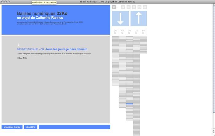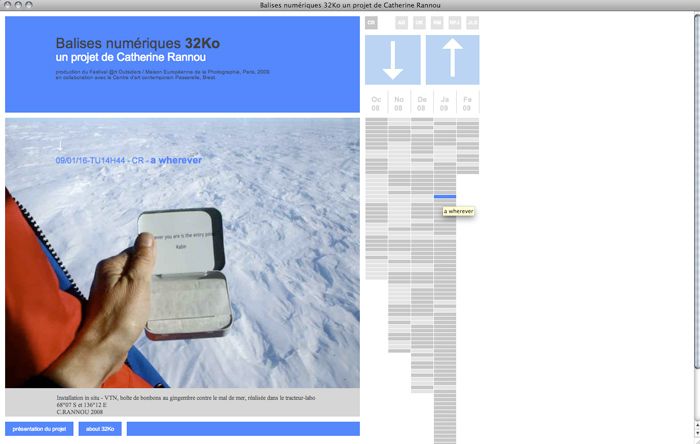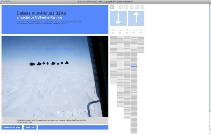 Projet produit et diffusé par le Festival @rt Outsiders / Maison Européenne de la Photographie, Paris et le centre d’art passerelle, Brest, soutenu par le Conseil Général du Finistère, Cultures France villa Médicis Hors les murs, Institut polaire Paul Emile Victor.