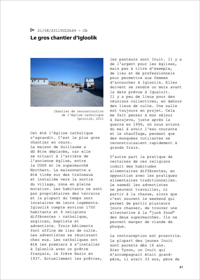 Texte Extrait d’une page du site “Igloolik”
