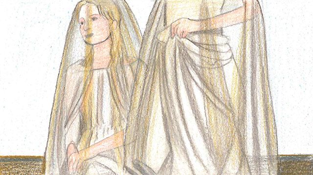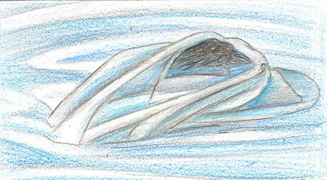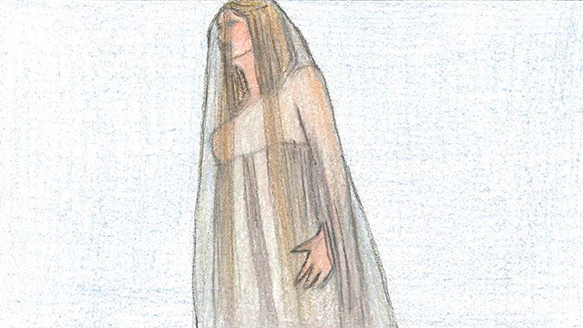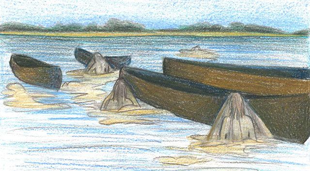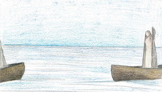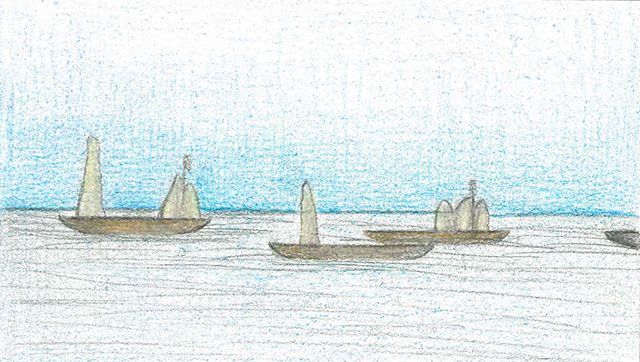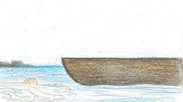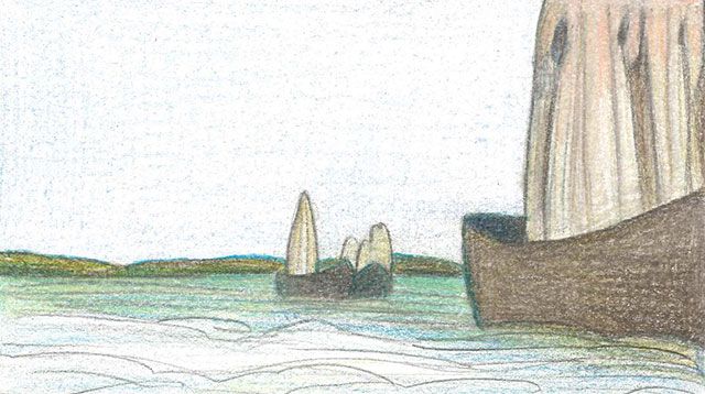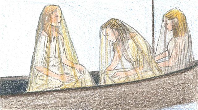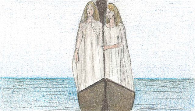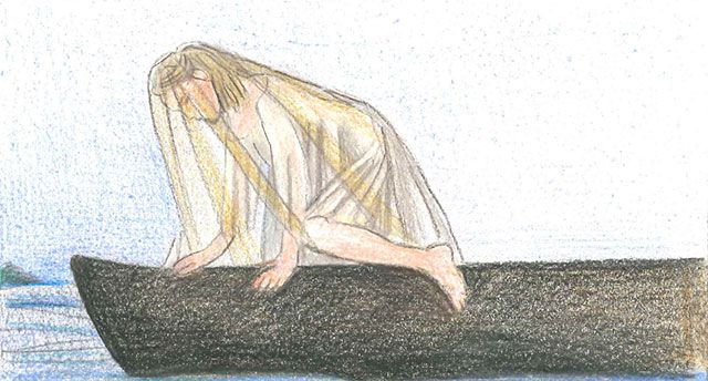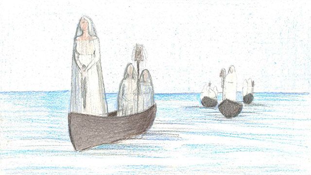 Des jeunes femmes juchées sur des bateaux, apparaissent dans la brume, munies de bannières et de drapeaux, figées dans des postures hiératiques. On dirait des apparitions: des images oniriques qui surgissent de l’eau. On se souviendra du symbolisme et des peintres préraphaélites, ou de Gaston Bachelard et du mythe d’Ophélie.