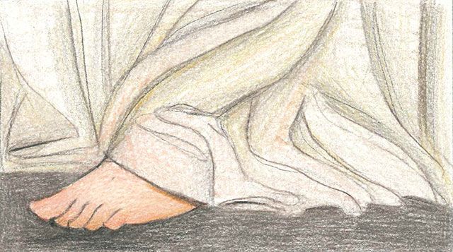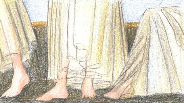 Cependant, si les références de l’artiste sont souvent explicites et relèvent du domaine du religieux, du rite ou de la littérature, c’est toujours pour procéder à un déplacement des codes. Du mystique au métaphysique et au … cinématographique. Les longs plans séquences soulignent ce mouvement processionnaire mystérieux et mélancolique, dont la destination reste une énigme. Illusion ou réalité ? Rituel ou fiction ?