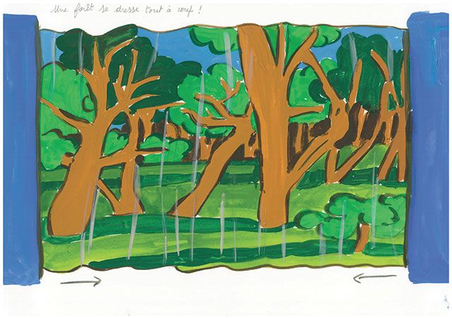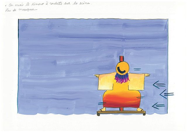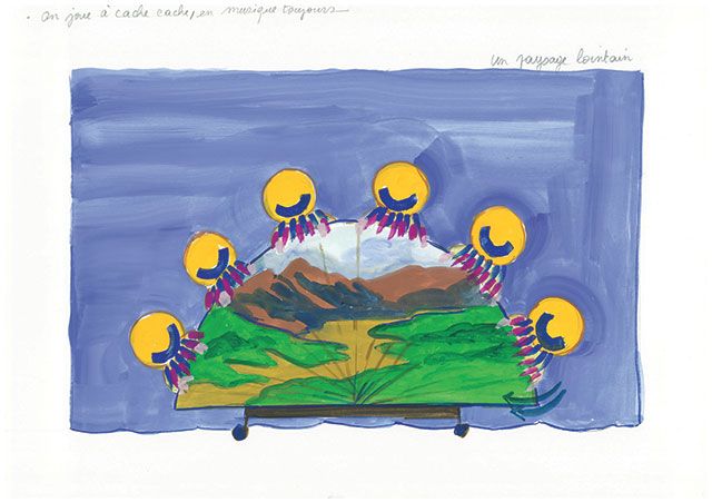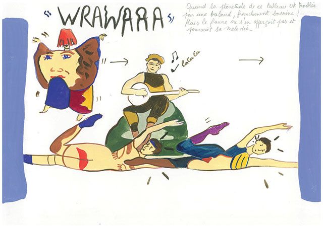 J’ai conçu les éléments de ce ballet en m’appuyant sur des gestes de danse comme support pour mes peintures. Pour les peuples premiers d’Australie, la peinture et la danse sont des médiums de transmission pour le rêve afin que l’on s’en souvienne aujourd’hui et pour toujours ; « À la recherche d’un état de joie » pour le dire avec les mots de Rudolph Von Laban.
