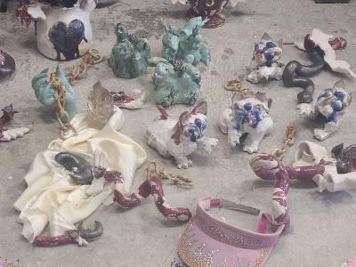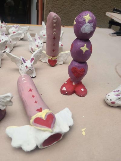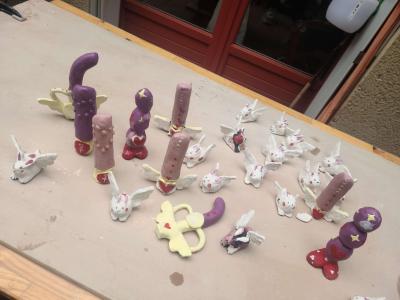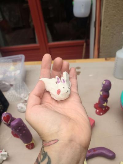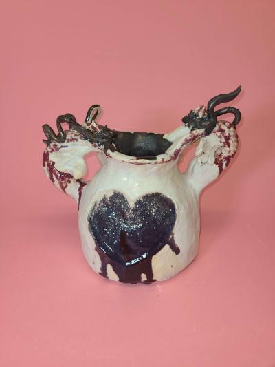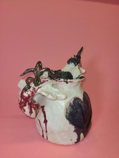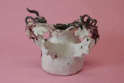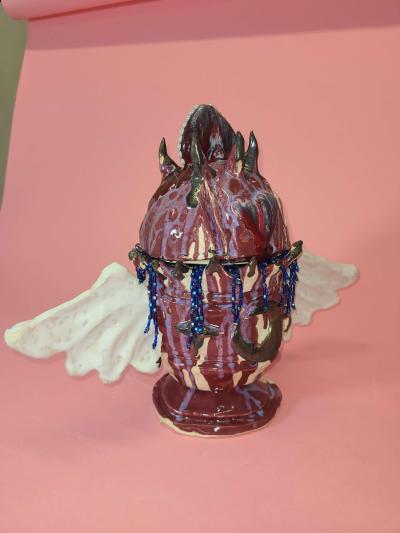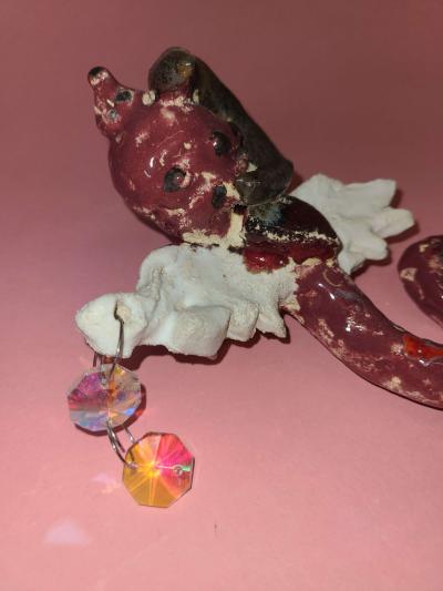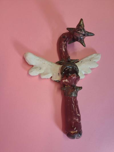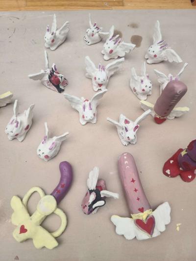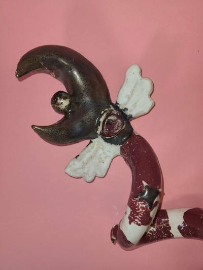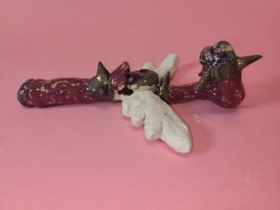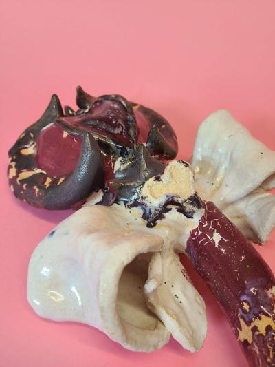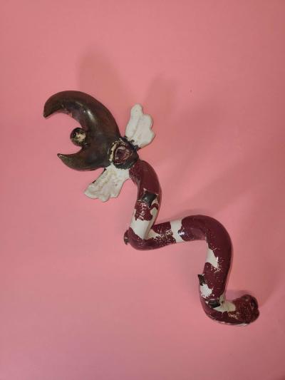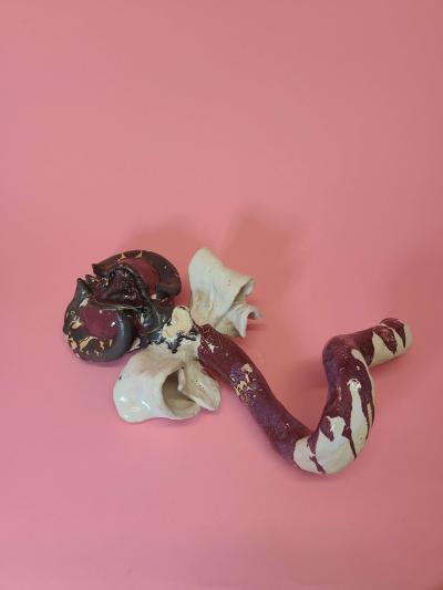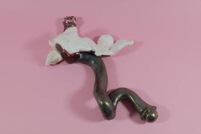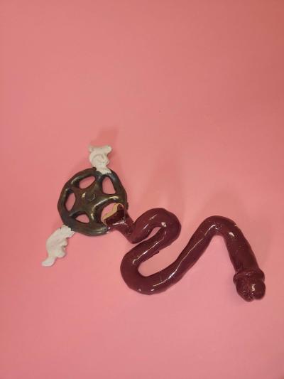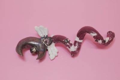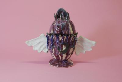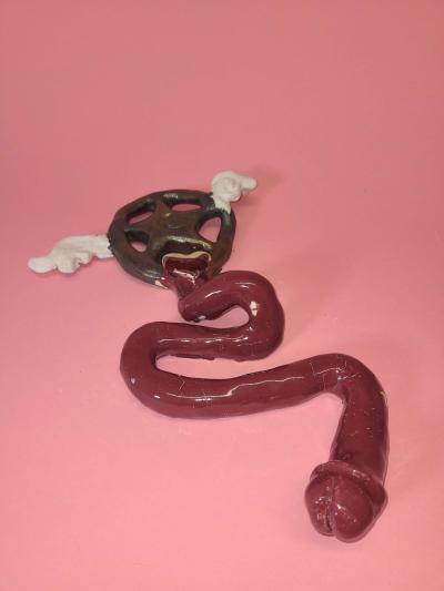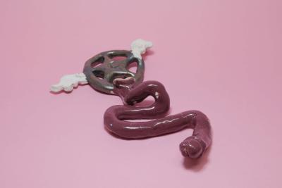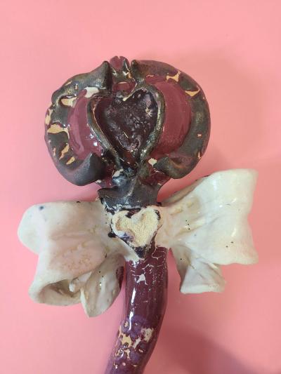 Partant de cette observation, l’artiste réalise une série de sceptres phalliques en céramique et d’autres objets détournées de l’univers de Sailor Moon, transformant l’arme en talisman queer et absurde.