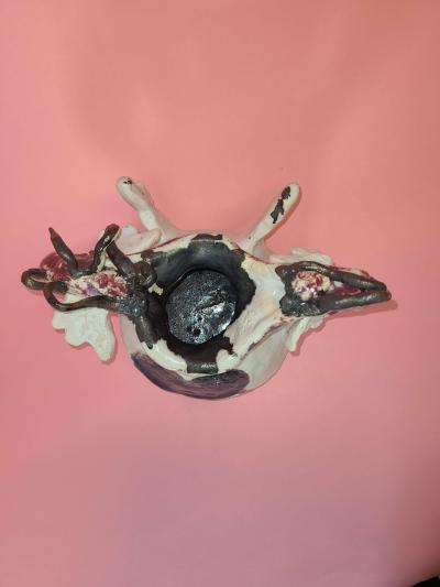 Inspirée par les armes magiques de Sailor Moon, Claire Guetta explore la dimension ambivalente des sceptres brandis par les héroïnes de la série : objets de pouvoir ou de désir. Loin des armes traditionnelles, ces sceptres projectent des rayons blancs et lumineux, signes d’une puissance symbolique plutôt que d’une violence réelle. Leur forme — souvent allongée, nacrée, décorée de pierres et d’or — convoque sans détour l’imaginaire du phallus et du godemichet : une virilité travestie, domestiquée, devenue accessoire.