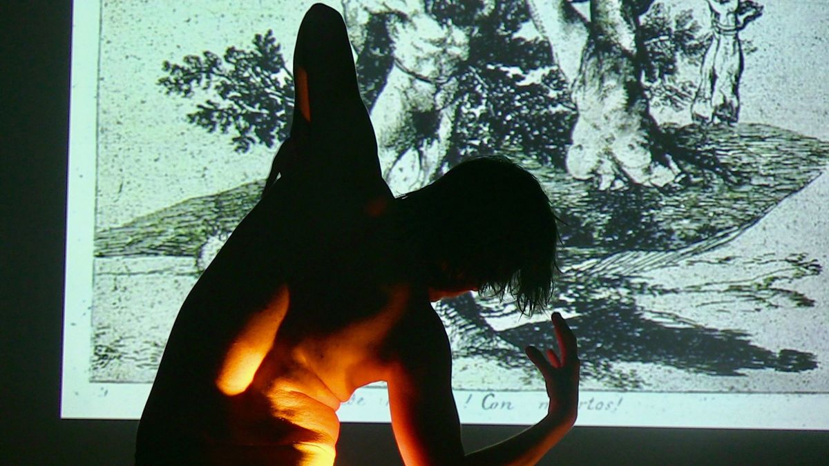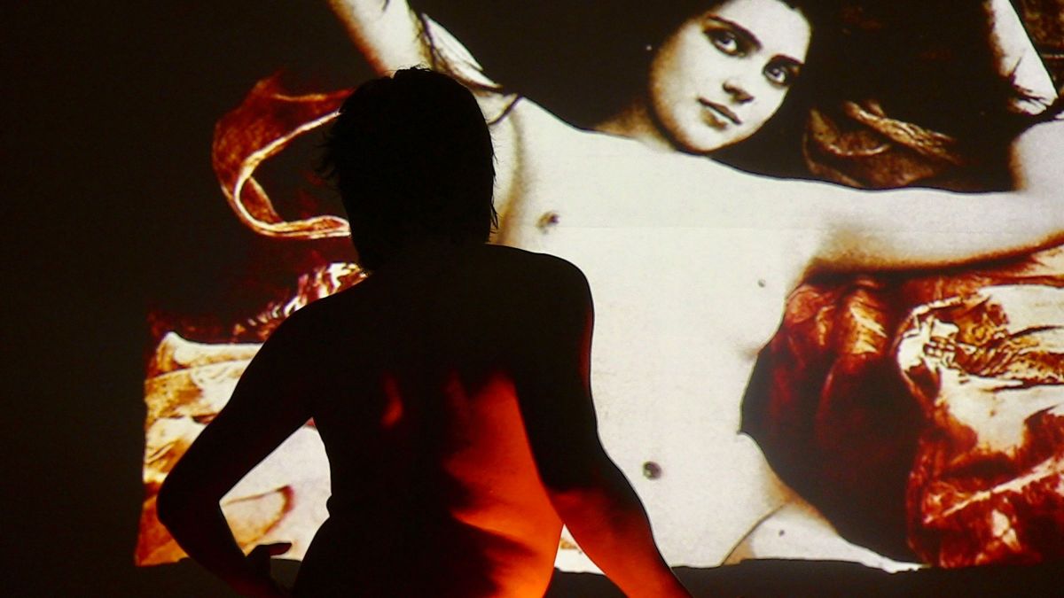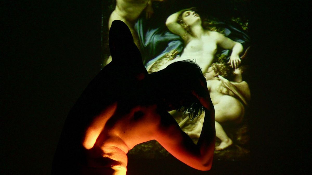 Dans un miroir, cadre de la scène, le reflet d’un corps masculin nu marqué par la culture se drape, se transforme dans une salle de bain. Cette serviette éponge qui prépare le corps à revêtir son costume devient l’image d’une mue aux signifiants culturels forts. Cette salle de bain où se travaille l’image de soi que l’on projette pour se protéger se crée dans cet espace intime. Cet espace protecteur où ce corps peut être ce qu’il veut et sans même avoir conscience de ce qu’il traverse. Le frottement de ce tissu souligne ce corps autant qu’il le cache. Ce miroir qui donne la possibilité d’être « non fixé » permet à ce corps de traverser la culture : de la statuaire antique à la représentation actuelle du corps. Ces transformations sont à l’image de l’évolution du corps et de sa représentation, de la puissance culturelle sur la chair. Cette serviette éponge, ayant pour rôle d’essuyer le corps après que celui ci se soit lavé, ici se voit devenir drapé avec son pouvoir évocateur. Le drapé lié à l’érotisme cache en général les corps mais les révèlent par la même occasion. Le corps est politique, sa nudité tout comme ses vêtements le sont aussi. Qu’importe le vêtement porté celui ci devient image, image d’une société, d’un genre, d’un style, d’un statut social… Un corps debout sur un socle, tel une sculpture, avec une serviette éponge sur la tête cachant la totalité de son corps attend. Au son d’une voix, le corps se meut, adoptant des poses évocatrices de l’histoire de la représentation. Paroles traitant du corps, de ses considérations, de ses évolutions, de ses représentations…