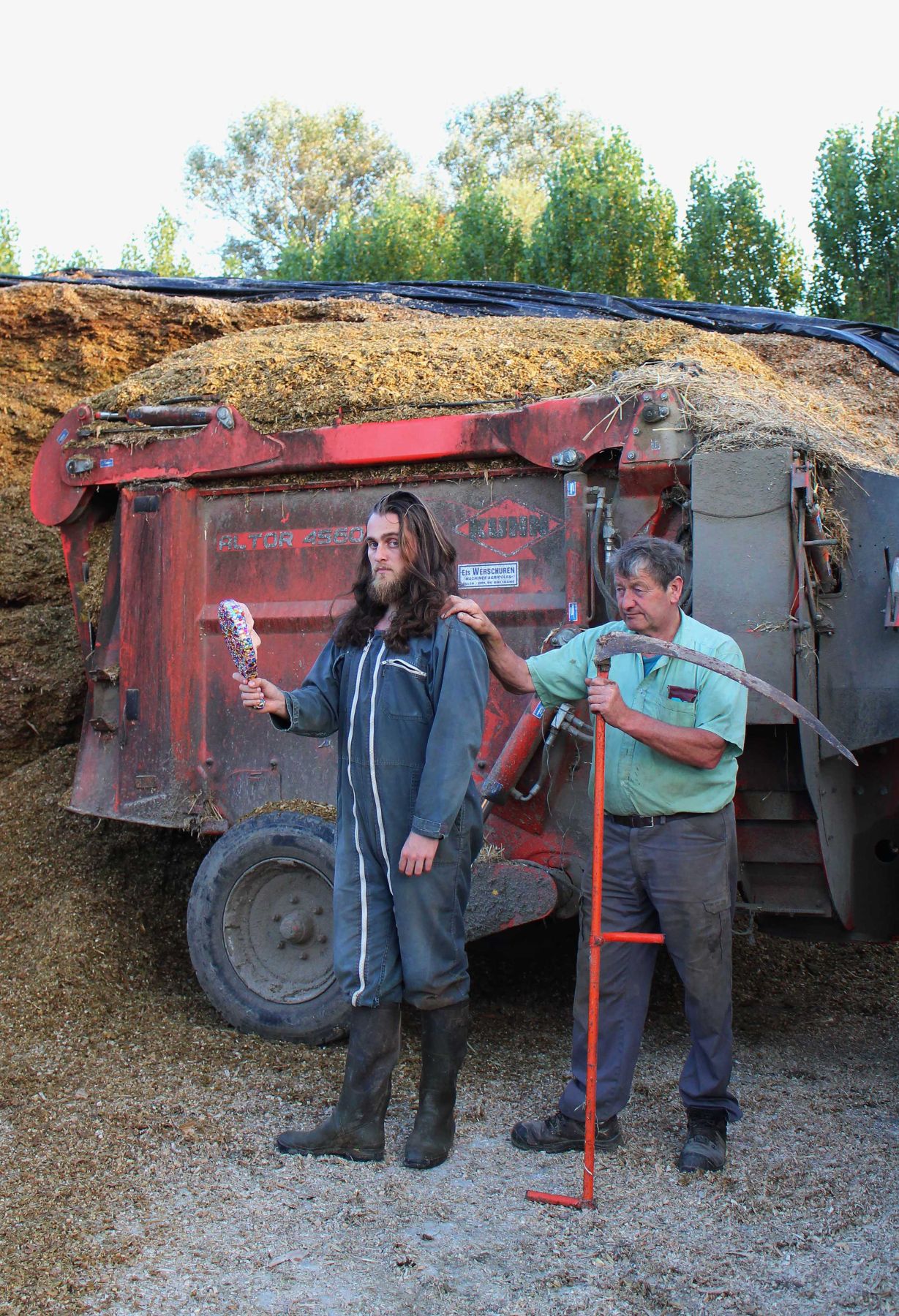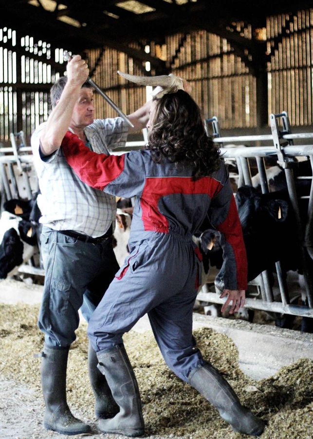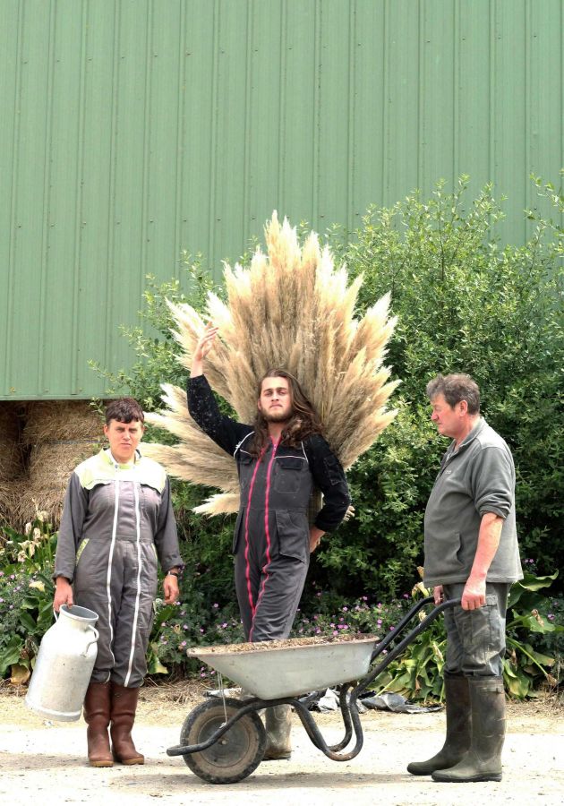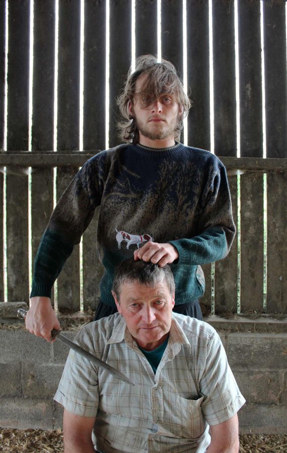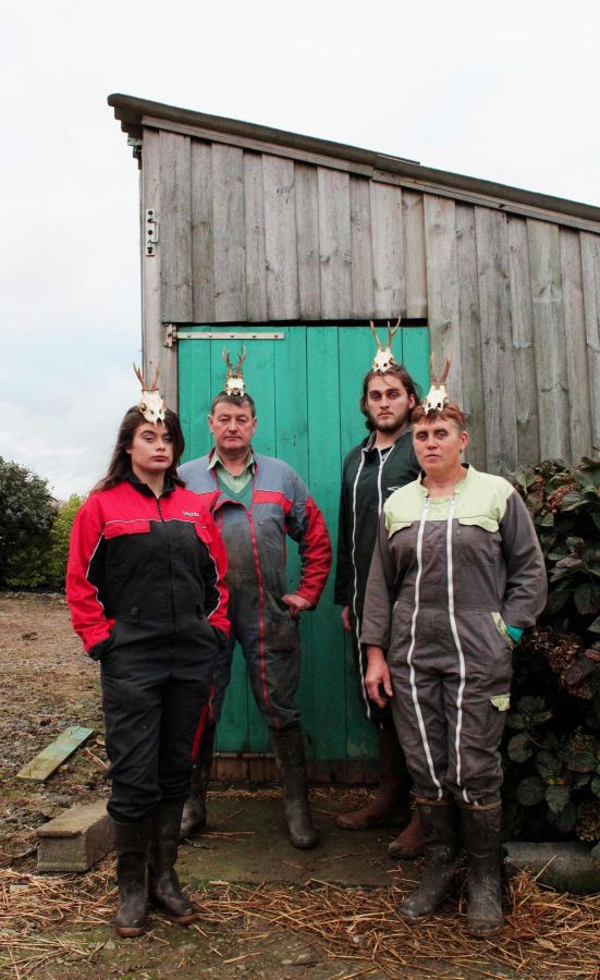 La ferme familiale est devenue le décor, mes parents, ma sœur et moi-même, les acteurices principaux.ales de ces mises en scène. En mêlant iconographies mythologiques, religieuses et populaires, écrire d’autres récits et par nos identités, travestir les images.