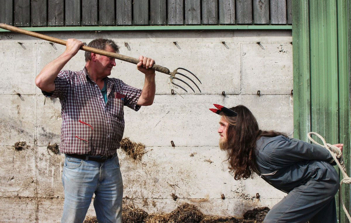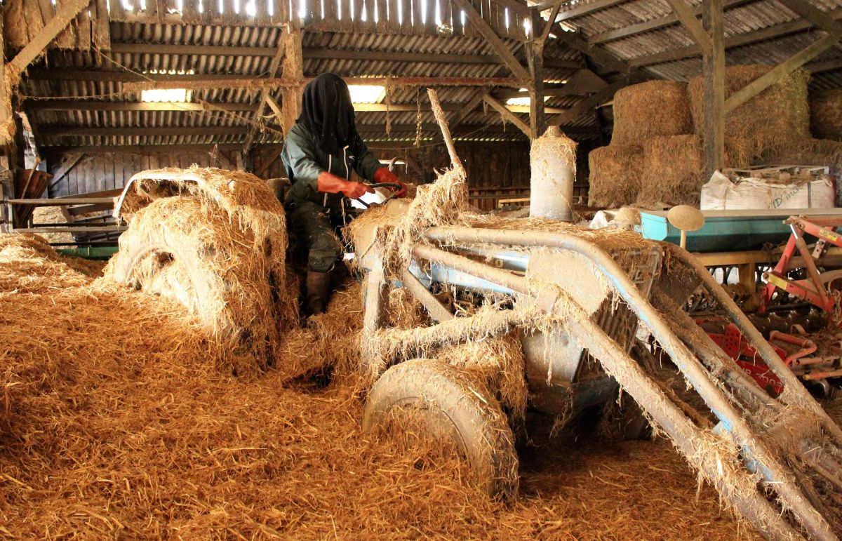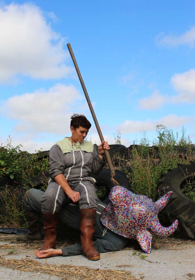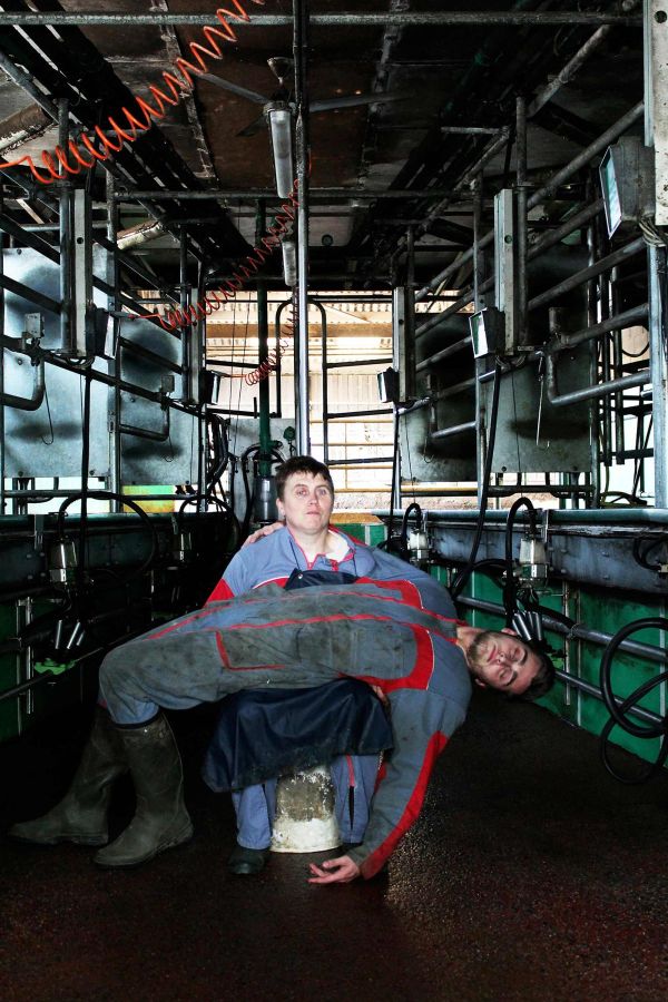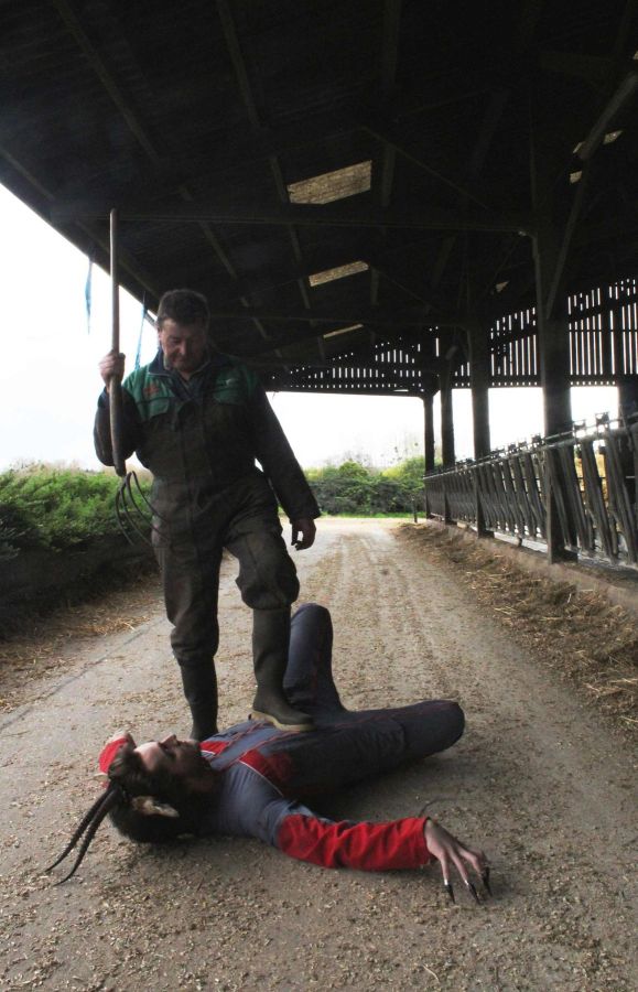 La ferme familiale est devenue le décor, mes parents, ma sœur et moi-même, les acteurices principaux.ales de ces mises en scène. En mêlant iconographies mythologiques, religieuses et populaires, écrire d’autres récits et par nos identités, travestir les images.