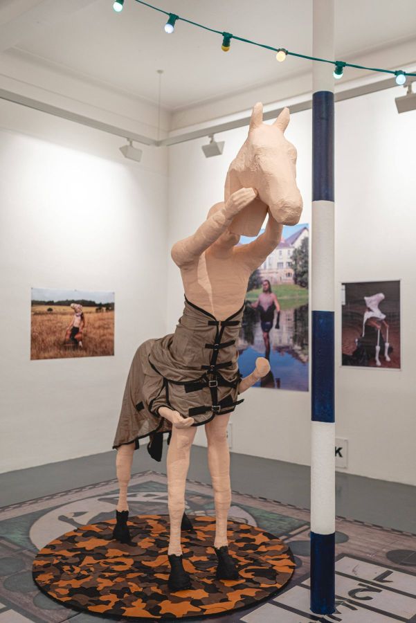 Damien Rouxel was raised on a farm, where he experienced the harshness, codes, tools and language of the farming world. His visual work (photography, video, sculpture, installation and performance art) puts a new spin on the farm, turning it into a stage on which the animals, the artist’s parents and his sister, the farm equipment and tools, and everything in its work environment become the scenery and actors. Through them, Rouxel stages various fields of research, such as his personal and family history, his gender identity, art history, the notion of monstrosity, myth, model, drag and the mask. The farm becomes an imaginary theatre in which both freedom and complexity are performed.