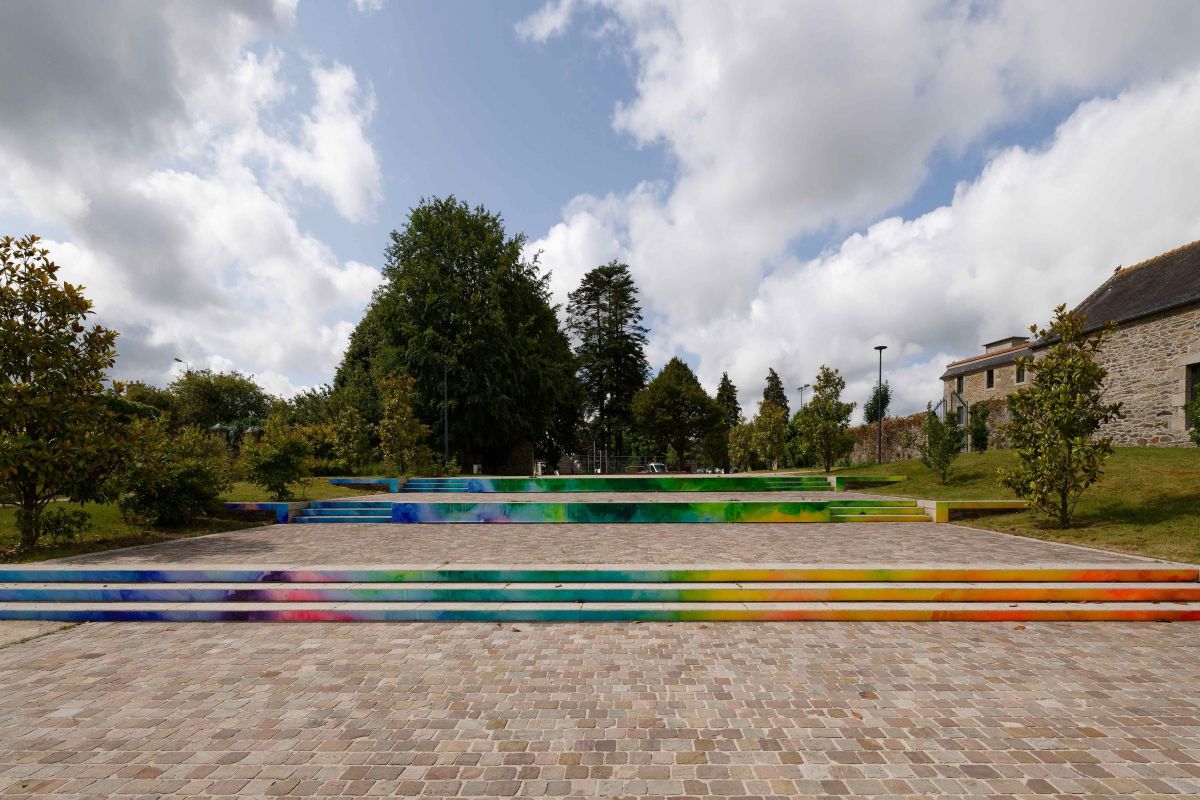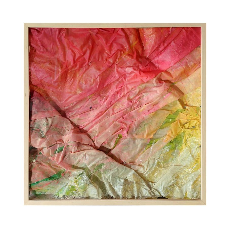 The artist blurs the lines between painting and sculpture by unfurling vibrant arrays of colour in these spaces. Her pieces are characterised by skilful collisions of bright, saturated hues. The energy of the artist’s gestures and of the tools she uses (brushes, brooms…) has become increasingly noticeable in the past few years thanks to her use of translucent materials that let the light shine through. The expressive strength of her painting reaches its full potential in action, in the body’s involvement in the creative process.
