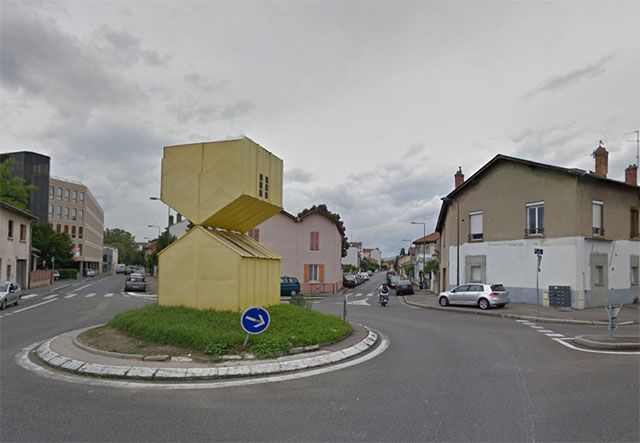 Fabrication monobloc en Vendée (La Roche-sur-Yon), puis transport exceptionnel et installation sur le giratoire Greuze / Pressensé à Villeurbanne