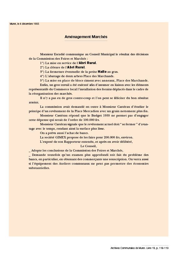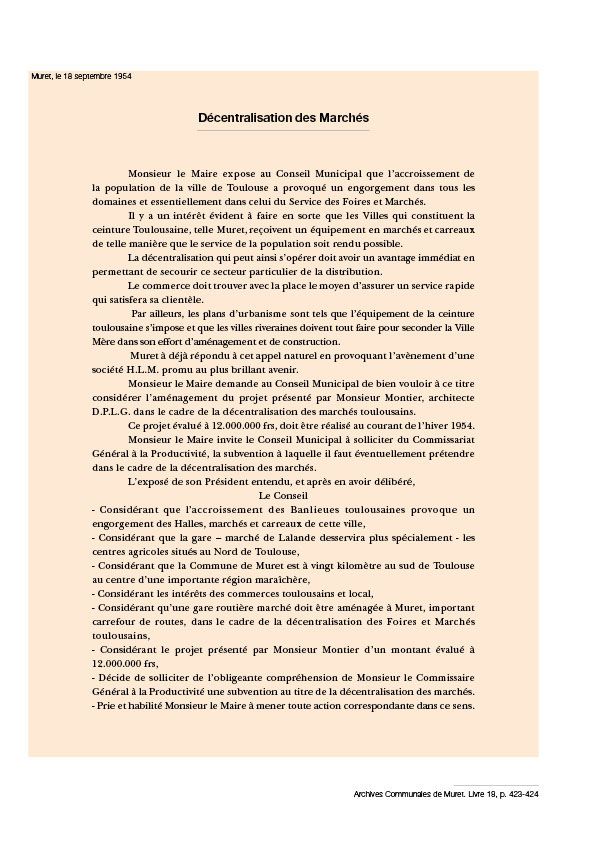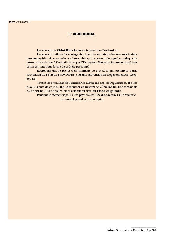 Extraits des Conseils Municipaux de Muret de 1955 retranscrits par l’artiste à l’occasion de sa résidence à Muret -