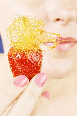Ici le geste questionne l’empreinte inattendue du pêché de la gourmandise « fraise-champagne », tatouage buccal bleu, qui persiste au-delà de l’instant de la dégustation.