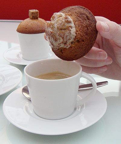 Biscuit-couvercle est une calotte ronde et moelleuse qui maintient le café au chaud pendant que son ventre rebondi s’imbibe de café. Ce biscuit fait référence au « canard » que l’on aime tremper dans sa tasse.