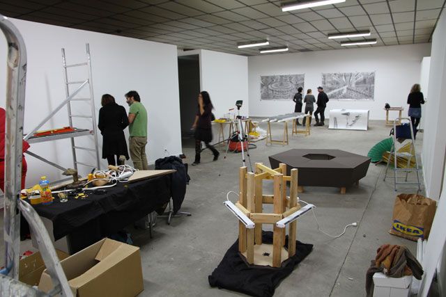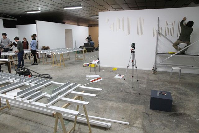 Vues du montage de l’exposition Tactiles tactiques au bbb de Toulouse, 2012