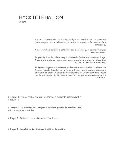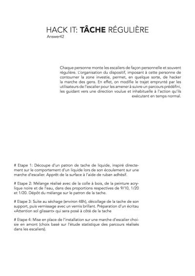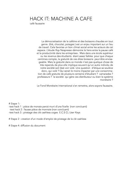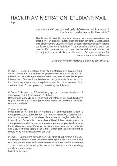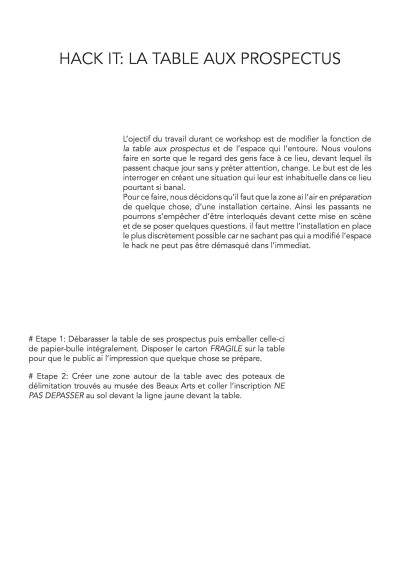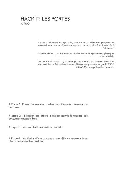 Les étudiants seront ainsi amenés à identifier des brèches exploitables dans des dispositifs puis à s’y engouffrer pour modifier, détourner voir complètement retourner les situations habituelles.