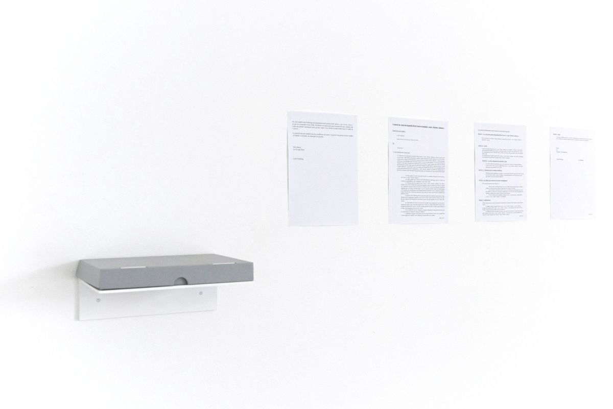 Le dispositif est composé de deux parties : l’archive, inaliénable et conservée par l’artiste, et l’objet, destiné à circuler selon les termes fixés par le contrat. Chaque transfert de propriété donne lieu à la signature d’un nouvel acte, conservé à la fois dans l’archive et dans l’objet, construisant ainsi la mémoire de l’œuvre au fil de ses échanges.