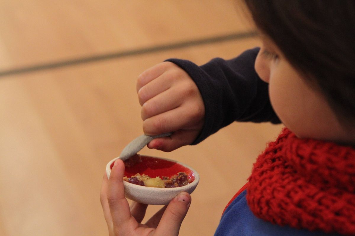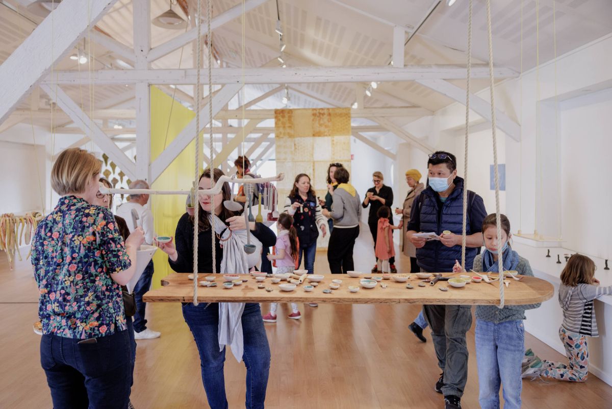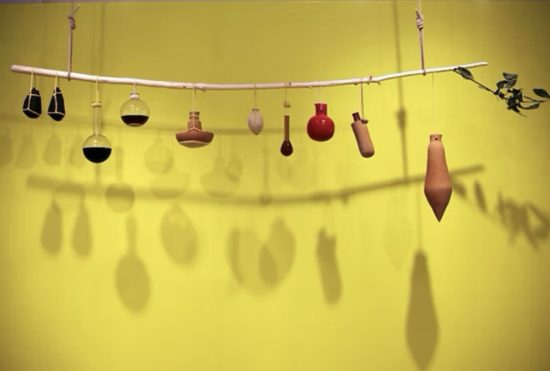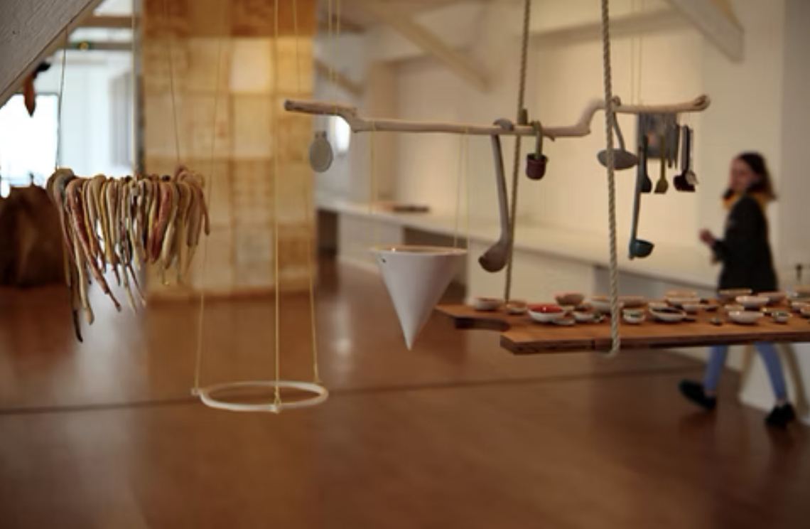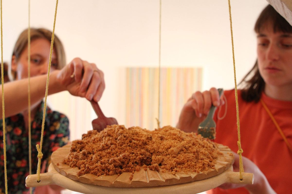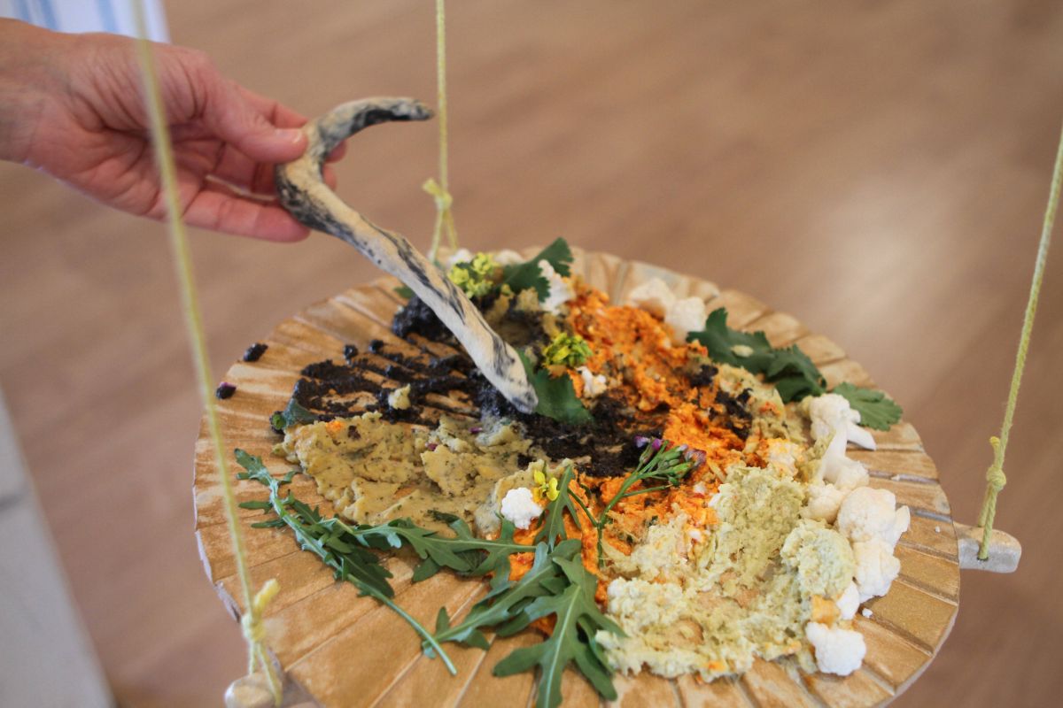 Conçues à 4 mains avec Fanny Maugey, les céramiques (verres, bols, coupelles, outils, bouteilles, suspensions) sont le fruit de plusieurs temps de travail à la Maison des arts plastiques Rosa Bonheur pour l’exposition Faire oeuvre en cuisine. La vaisselle organique, géométrique, ou parfois élémentaire, accueille des préparations culinaires du restaurant In Vino Tapas. Les deux plasticiennes qui habituellement cuisinent elles-mêmes pour leurs