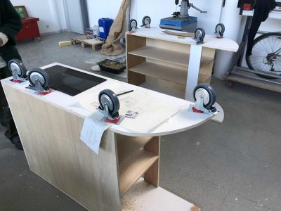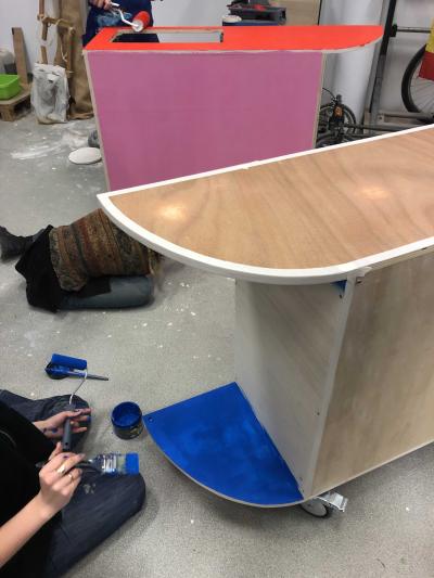 À partir de l’absence d’un lieu dédié à la cuisine au sein de l’école, les étudiant·es ont été invité·es à concevoir et fabriquer collectivement une cuisine mobile. Pensée comme un dispositif activable, elle a permis de questionner l’échelle des formes et des infrastructures conviviales.