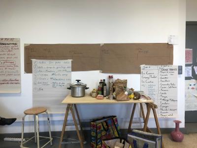 Ce temps de travail s’est inscrit dans des réseaux locaux d’entraide alimentaire, de récupération et de circuits courts. Les étudiant·es ont pu rencontrer L’association La table du soir et aider à la préparation d’un repas. Ce temps aura permis une collaboration pérenne et un repas par mois récupéré pour les élèves de l’école d’art. Des invendus ont également été récupéré dans plusieurs moyennes et grandes surfaces.