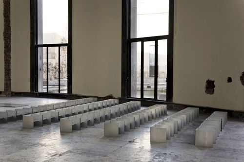 81 tabourets : 33 cm x 33 cm x 33 cm