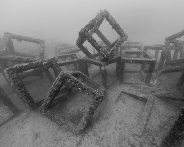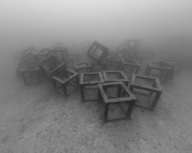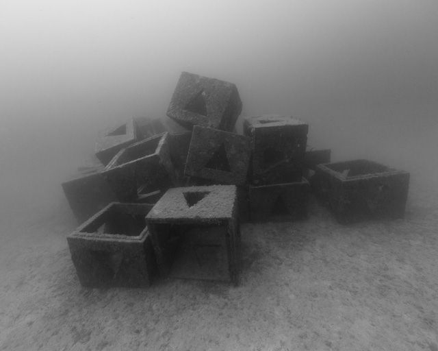 Dans le paysage sous-marin il existe des villes et des villages, de véritables architectures avec leur règles d’urbanismes. Couramment appelées « récifs artificiels », ces éléments souvent construits en béton sont en quelques années colonisés par la flore et la faune qui les transforment en sculptures/architectures vivantes. Ces « structures productives » sont parfois plus performantes que le milieu naturel. Elles proposent sur un même site des volumes d’habitations et des espaces de vie correspondant à l’ensemble du cycle de développement de différentes espèces. Une chaîne alimentaire complète et protégée peut alors se mettre en place. Au Japon, la réalisation à un niveau industriel de ces structures aboutit à la construction de villes entières et de programme «d’urbanisme» sous-marin. Ces formes apparaissent le temps de leur montage sur les quais des ports pour ensuite disparaître dans les profondeurs et entamer leur métamorphose. Le projet en cours est à la croisée de l’art contemporain et de la recherche scientifique :