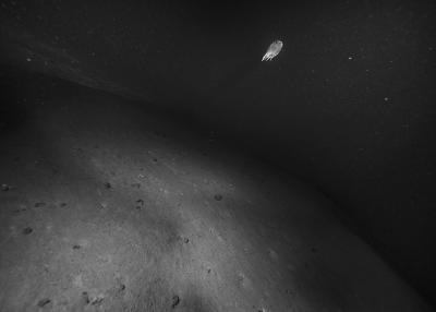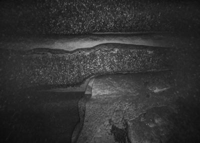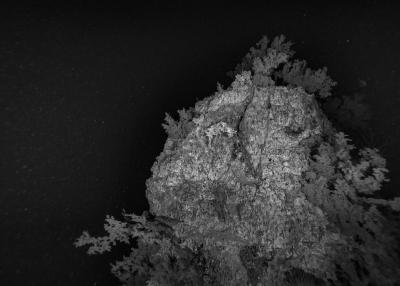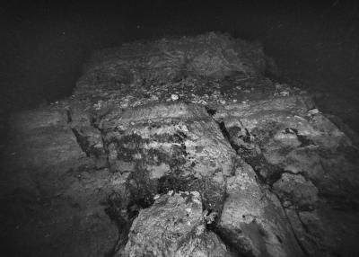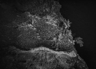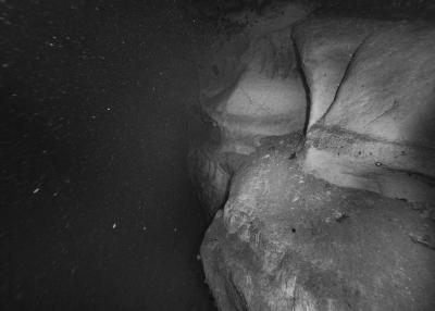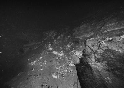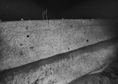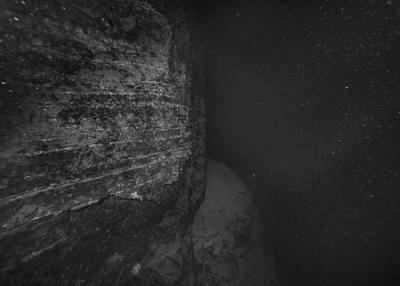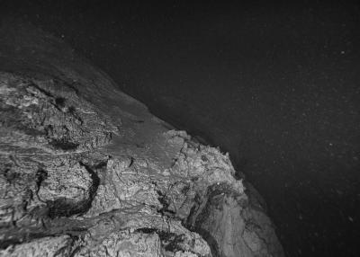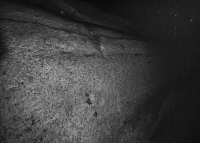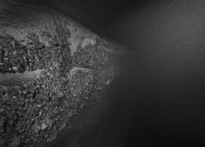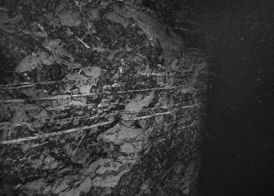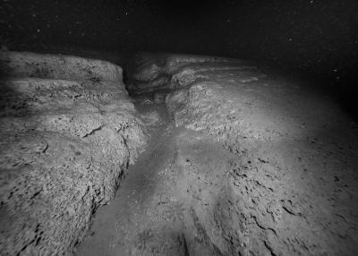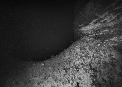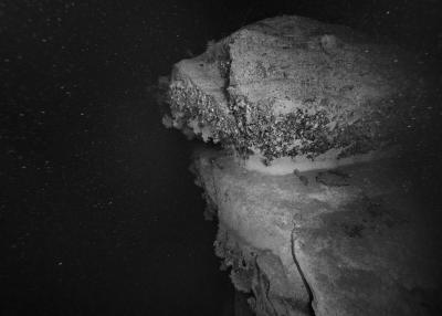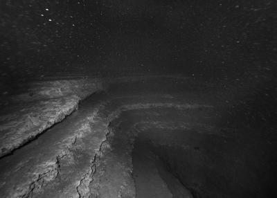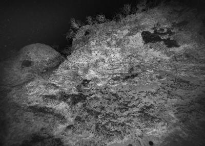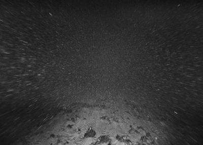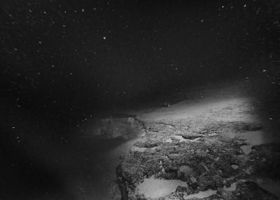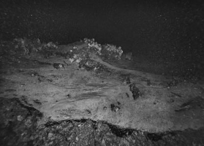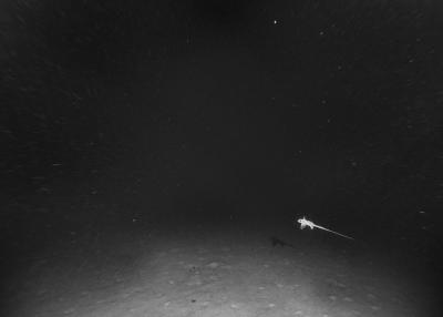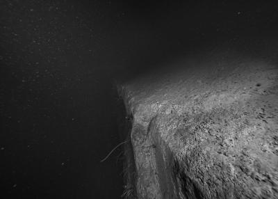 Images réalisées à partir d’un dispositif photographique de Nicolas Floc’h placé sur le HROV Ariane, un robot sous-marin de la flotte océanographique française, lors des plongées de la mission Chereef. La campagne océanographique Chereef (Characterization and Ecology of Cold-water Coral Reefs) conduite par l’Ifremer représente la dernière étape du projet Initium Maris que je mène depuis trois ans le long des côtes bretonnes. En effet, l’institut m’a permis d’étendre mon exploration à l’environnement profond en m’embarquant sur cette mission de vingt et un jours. L’objectif scientifique était d’explorer le canyon de Lampaul, situé à 300 kilomètres au large de Brest, au bord du talus continental. La mission Chereef propose ainsi d’étudier les habitats de coraux d’eau froide du golfe de Gascogne, entre 700 et 2 000 mètres de profondeur, à l’aide du HROV Ariane, un robot sous- marin. Un observatoire déployé́ par 1 000 mètres de fond permet également à l’Ifremer d’effectuer un suivi durant plusieurs années sur ce site. Je souhaitais poursuivre mon inventaire des paysages sous-marins dans la « nuit » des profondeurs. Spécifiquement pour cette mission, je mets donc au point un système de prise de vue au grand angle différent de celui des scientifiques, qui privilégient des vues plus serrées. Je sangle un caisson sous-marin contenant mon appareil sur l’avant du robot Ariane, un peu comme si je le fixais sur le pare-chocs d’une voiture. Cette fois-ci, je ne travaille pas en lumière naturelle, mais je profite des « phares » d’Ariane qui éclairent ces paysages – totalement inaccessibles physiquement – lors de onze plongées entre –700 et –1 800 mètres. Au fond, c’est un peu Mars ou la Lune mais habitée par des poissons solitaires et des milliers d’espèces. Tout du long de la colonne d’eau, dans le substrat des échantillons prélevés que nous remontons, dans le détail de mes images, ce qui me surprend, c’est la vie, la quantité́ d’êtres habitant l’océan profond que l’on observe. Cette vie discrète qui apparaît distinctement dans la couleur de l’eau proche de la surface, dans les zigzags des zooplanctons lors de la descente dans la nuit hyperbare, dans la colonisation des parois des falaises du canyon à plus de 1 000 mètres de profondeur, dans le sédiment…