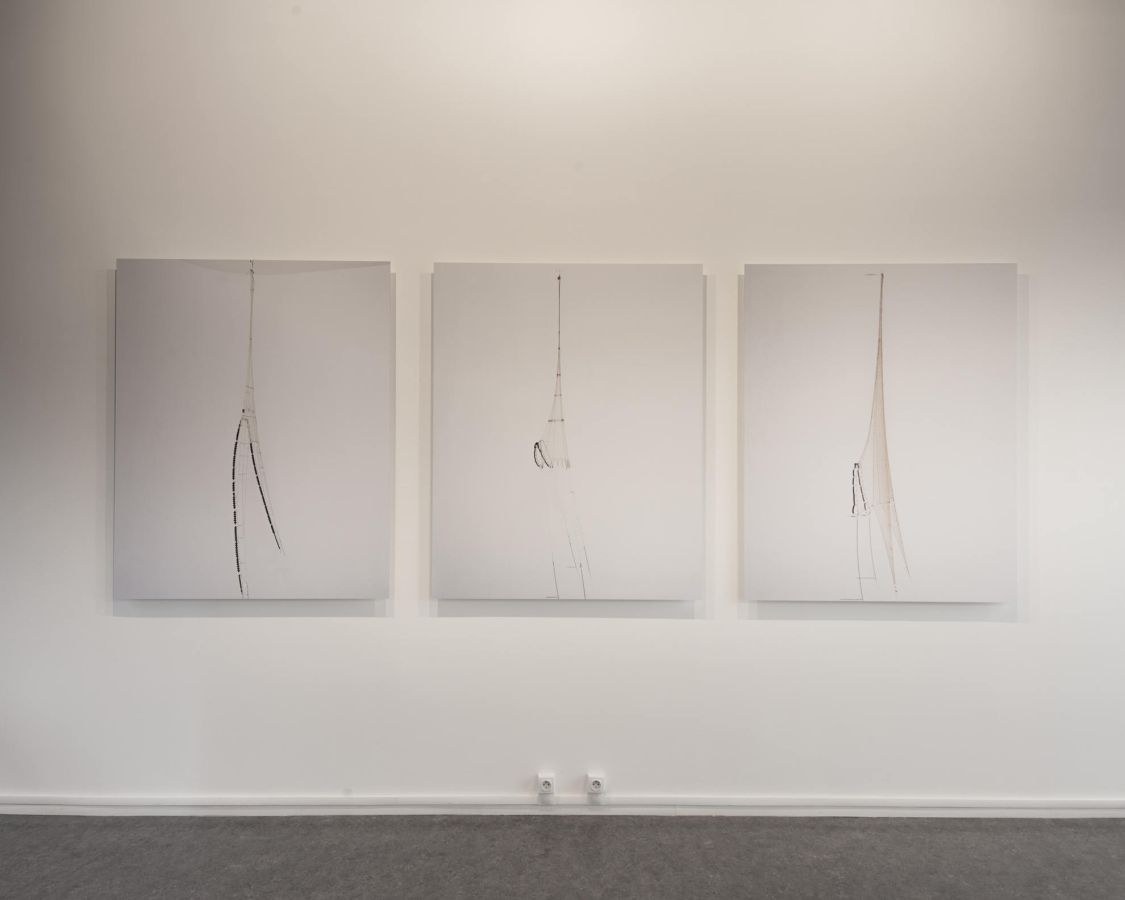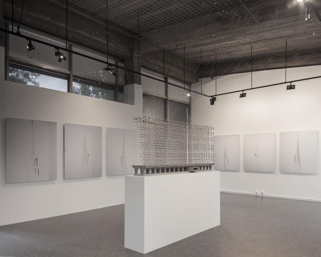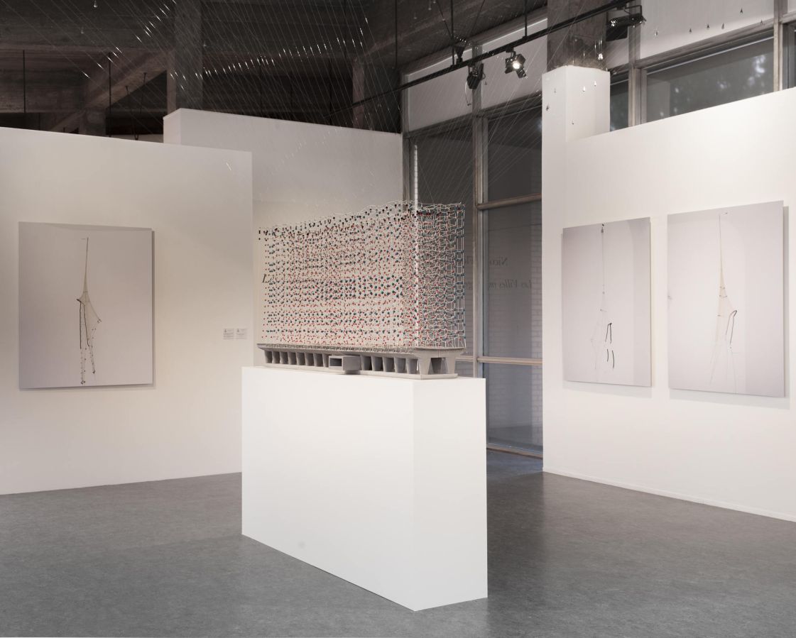 béton, fil nylon, perles, 80 x 203 x 33 cm