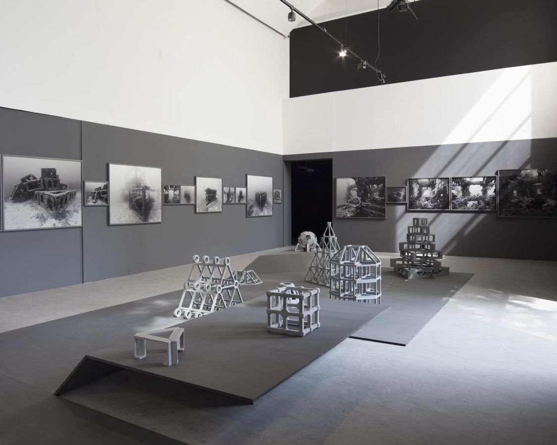 Dans Les villes immergées, Nicolas Floc’h étudie un mode de fabrication atypique, celui des récifs artificiels et mène un projet au long cours, entre expéditions sous-marines et recherches documentaires. Alors que pendant longtemps, la transformation manufacturière de l’agriculture a concouru au développement des villes, c’est ici le vivant, végétal et animal, qui est créé à partir d’une superstructure architecturale faite de machines sous-marines élémentaires ou habitats modulaires.