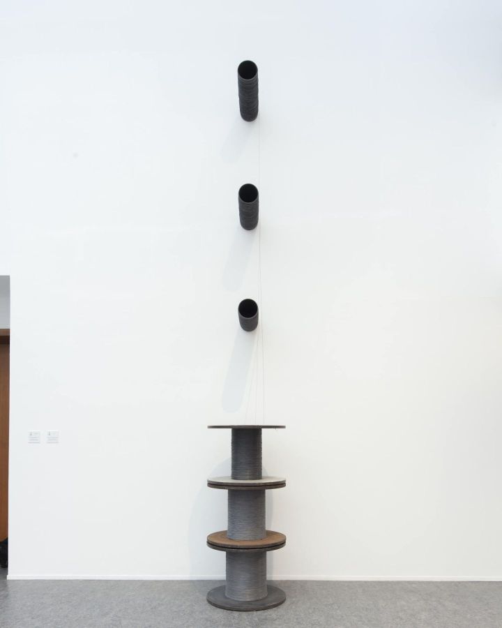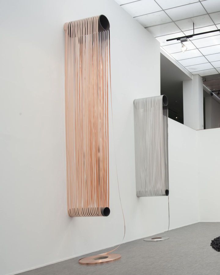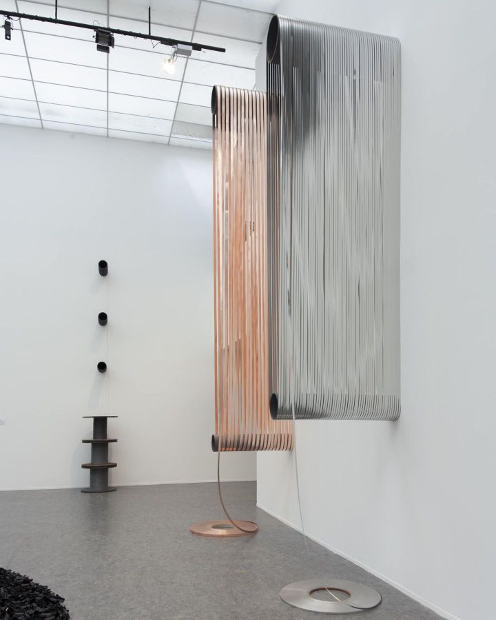 Lover existe sous différentes formes. C’est un film, une installation, un ensemble de sculptures, des performances. In fine, un protocole de monstration, un scénario, une partition. Dans la vidéo, Nicolas Floc’h suit la fabrication toute en rotation et continuité des câbles et filme les lovers jusque dans leurs immenses cuves de béton. Les sculptures polymorphes témoignent du déplacement perpétuel du volume des cordes et des câbles et se réinventent au gré des espaces qu’elles traversent. La performance met en scène de changement d’état et leur activation.
