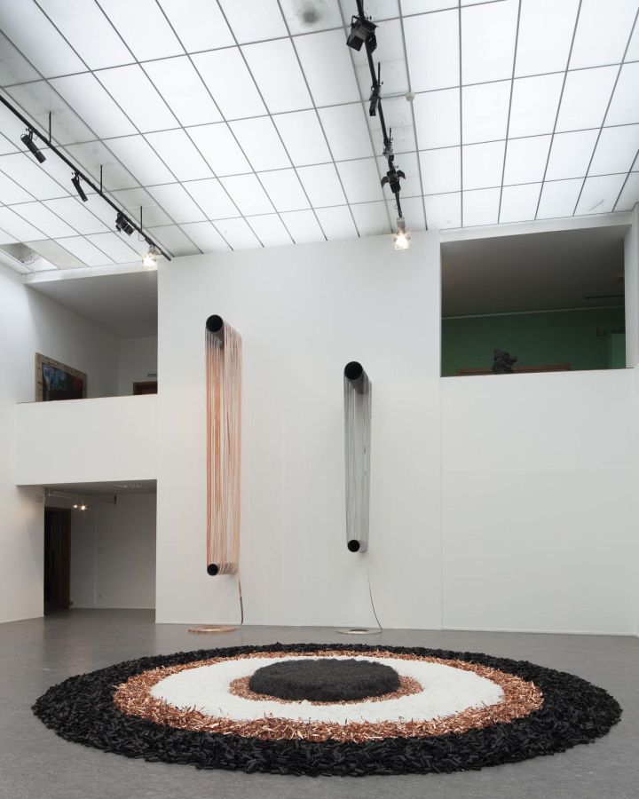 Lover et Déconnexion sont composés des éléments constituant les câbles: cuivre, acier, polyéthylène, filin polypropylène, bitume et fibre optique qu’ils protègent. Nicolas Floc’h met à plat la matérialité et déconstruit ce que l’on appelle, par un abus de langage, la dématérialisation. Il formalise les étapes de production/recyclage et notamment la dernière phase, celle du conditionnement. Les câbles sont en effet disposés au sol en cercles concentriques. Les lovers s’en chargent. Ils reproduiront cet exercice physique à bord du bateau dans les cuves de stockage en amplifiant le mouvement si particulier et si courant du marin qui enroule et installe ses cordes pour optimiser l’organisation fonctionnelle de l’espace. A la beauté du geste, tout en force et en courbes, s’ajoute la poésie frivole du langage née de l’homophonie entre le verbe «lover» en français et «l’amoureux» anglais…