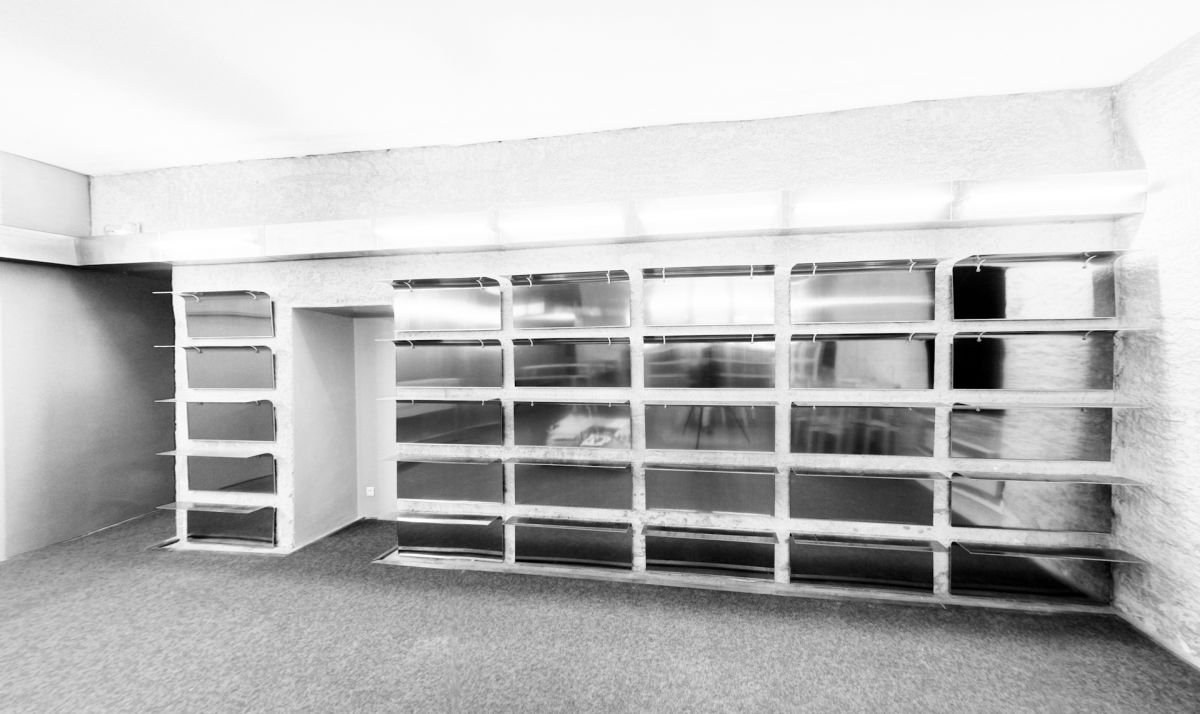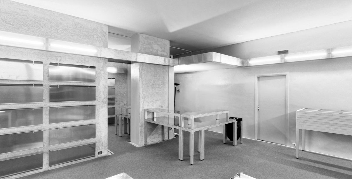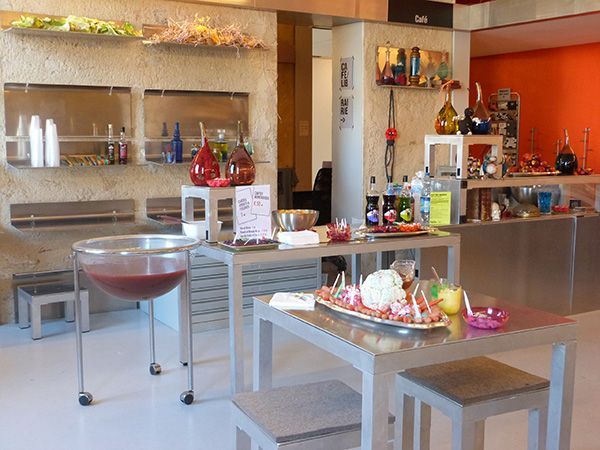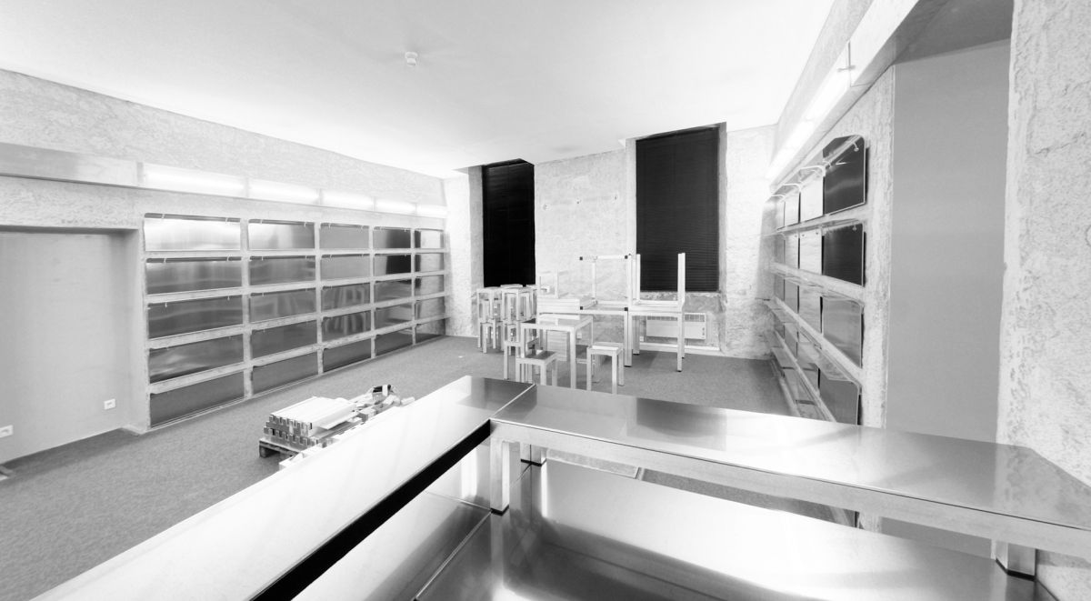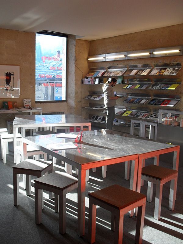 Mobilier modulable en aluminium pour l’accueil et l’espace librairie du Quartier, Centre d’art contemporain Quimper