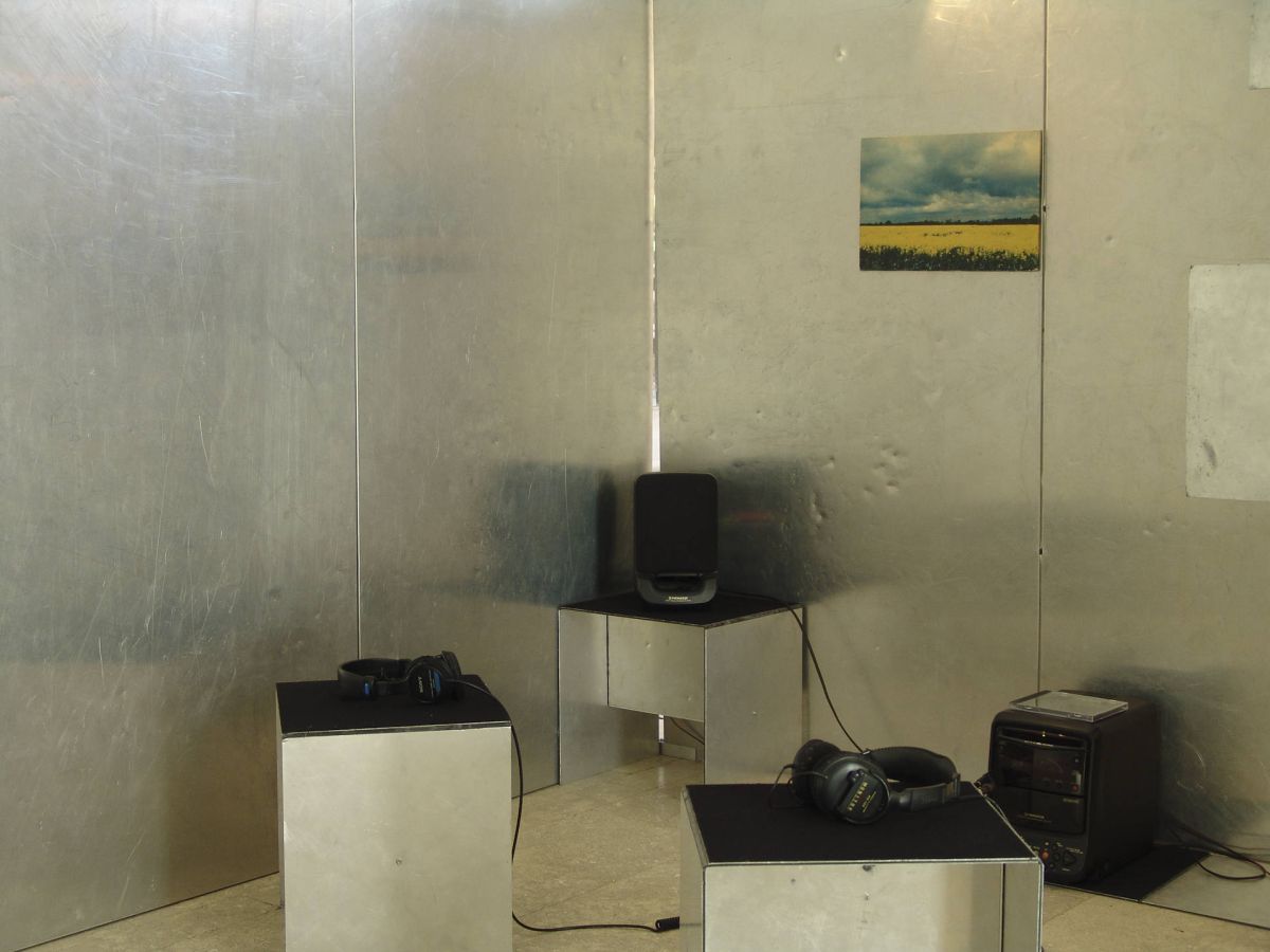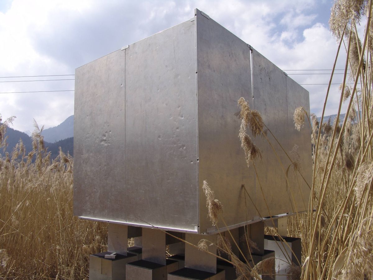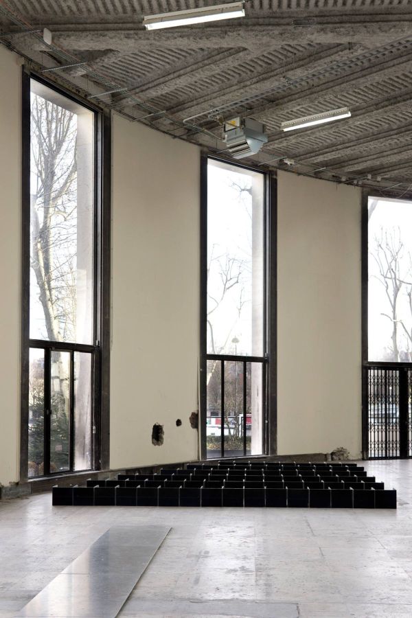 Les modules ont pour fonction de réfléchir la lumière et le son. Ils sont organisés pour créer des jeux graphiques et sonores. Le son est destructuré par les vibrations des infrabasses dans la caisse. La dis- torsion des images lumineuses provient de la structure de la surface du métal.