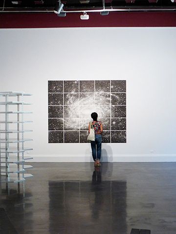 La mesure est une opération définissant une échelle préalable (une unité) afin de pouvoir la comparer avec le réel. Il s’agit autant d’un geste que d’un calcul. La mesure est un outil indispensable à nos activités quotidiennes, intellectuelles, professionnelles… Un artefact qui nous permet d’interagir avec le Monde. La représentation de la Voie lactée est une image construite par des calculs, une image constituée par des chiffres. Je me suis emparée de cette image afin de la reproduire.