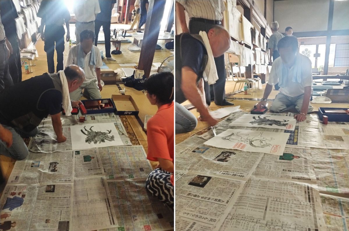 Apposition de seaux de bénédiction suite à la prière bouddhiste le 09 août 2025 au Sogen-ji
