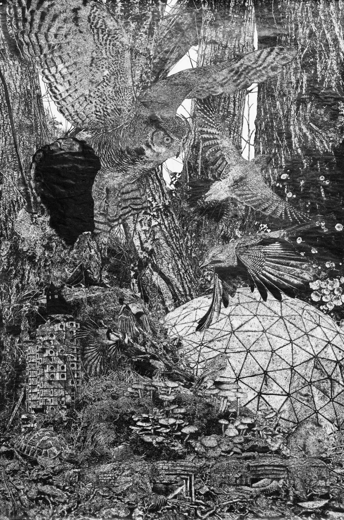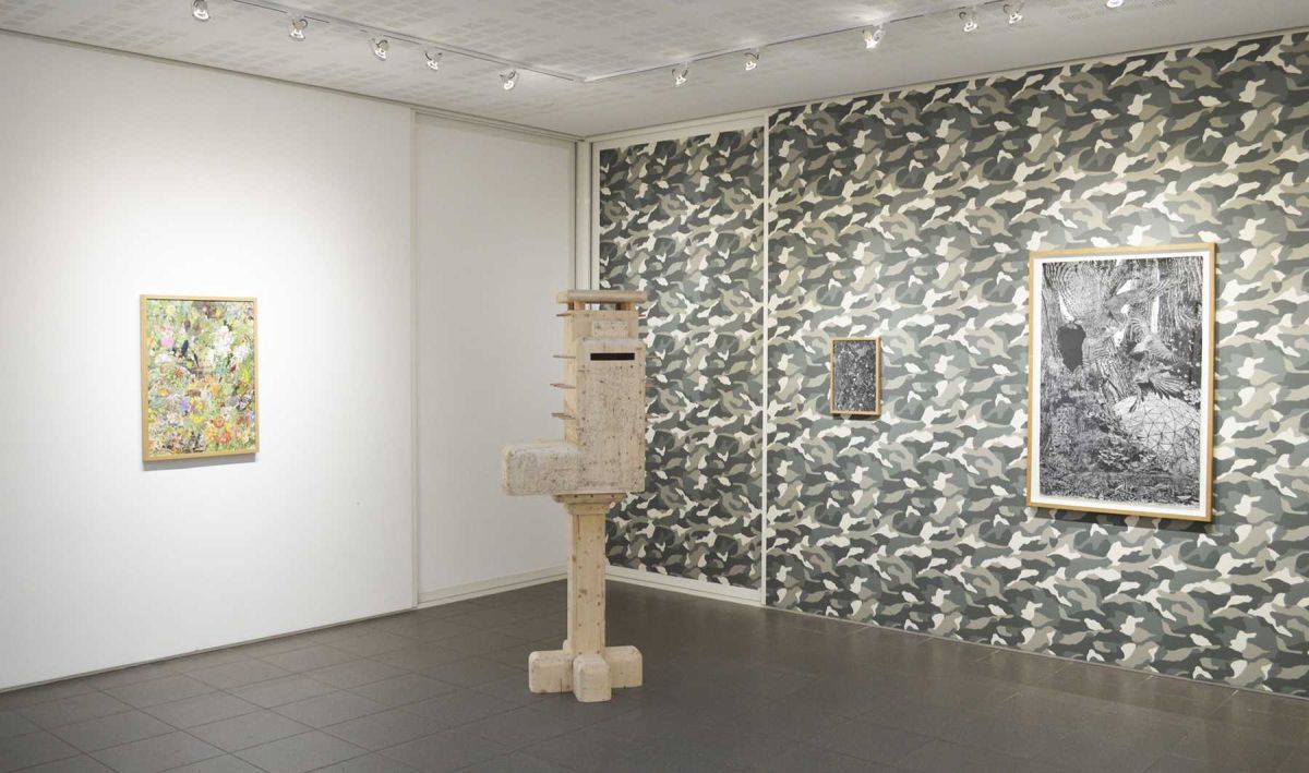 Vue de l'exposition « Il est, au pays d'Hémonie, une région boisée... », L'aparté, lieu d'art contemporain, Lac de Trémelin, Iffendic, 2020