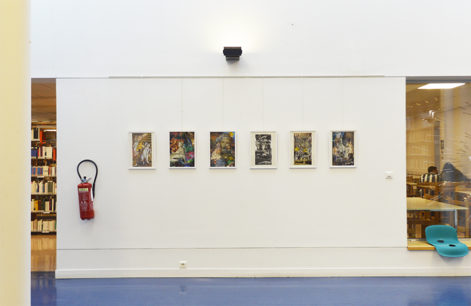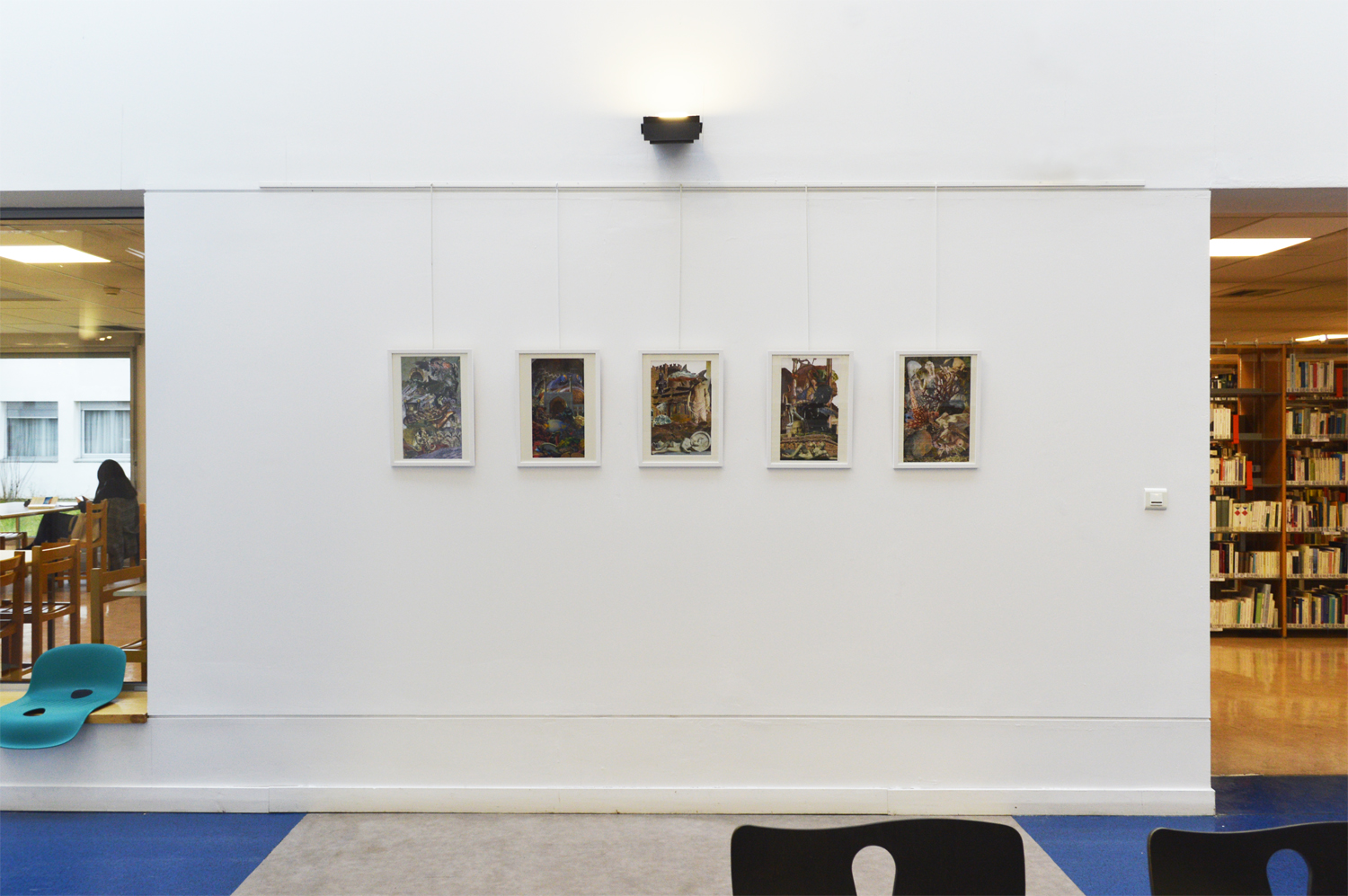 Vues de l'exposition Omphalos, Bibliothèque Universitaire du Mont Houy, Université Polytechnique Hauts-de-France, Valenciennes, 2019