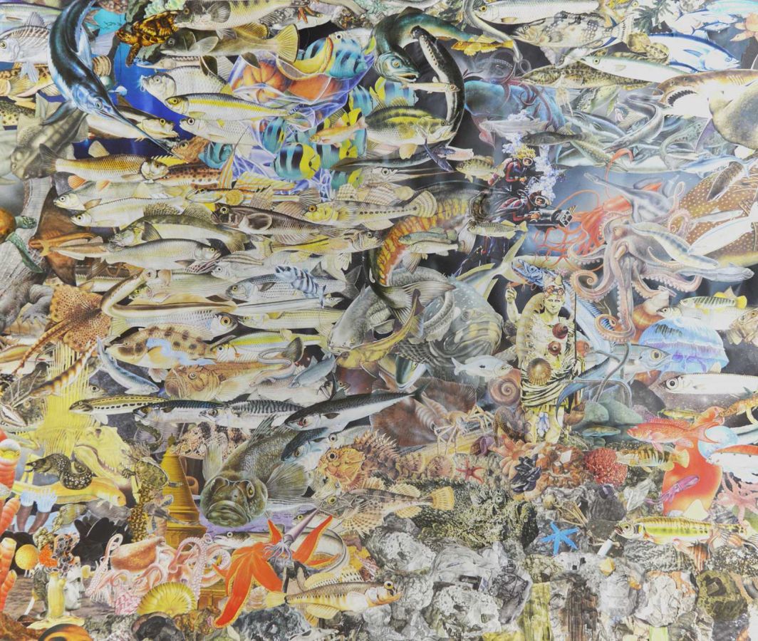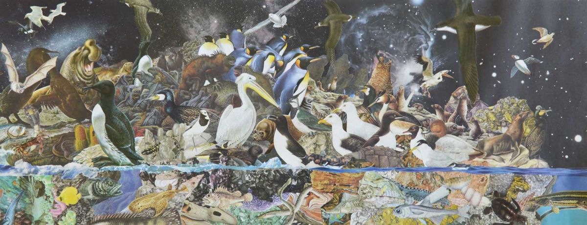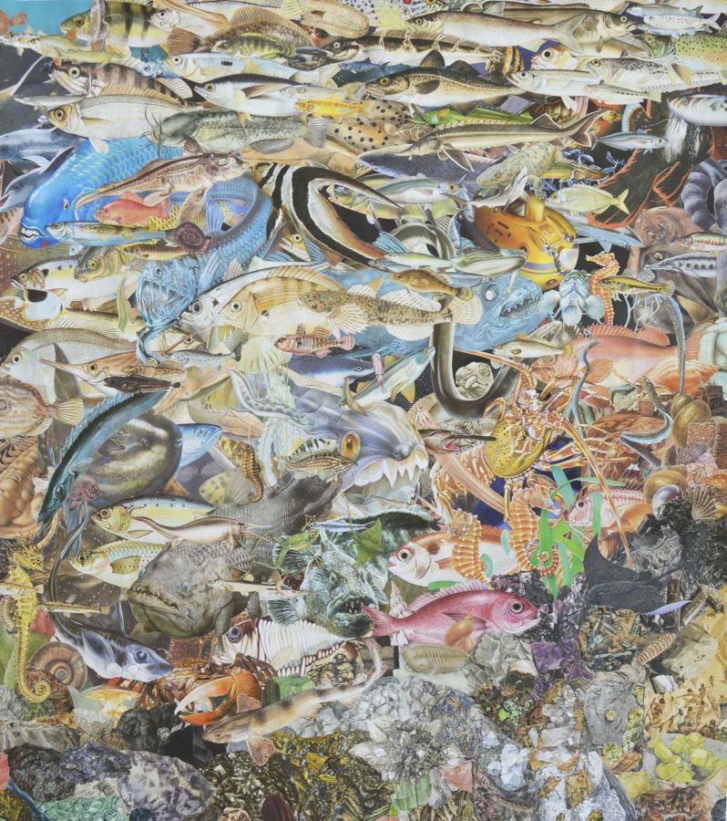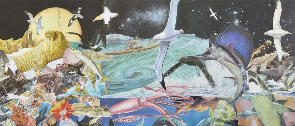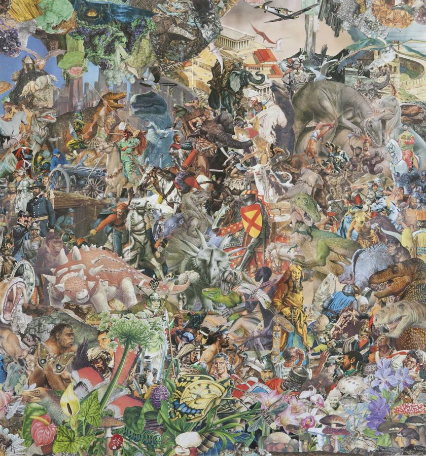 Illustrations découpées et collées, scotch, graphite, crayon couleur, encre, ensemble de neuf panneaux
