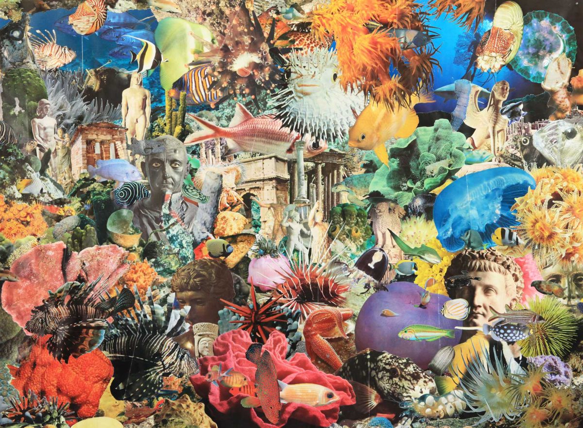 Crayon, scotch, photographies découpées et collées, diptyque, 176 x 123 cm et 109,5 x 147 cm