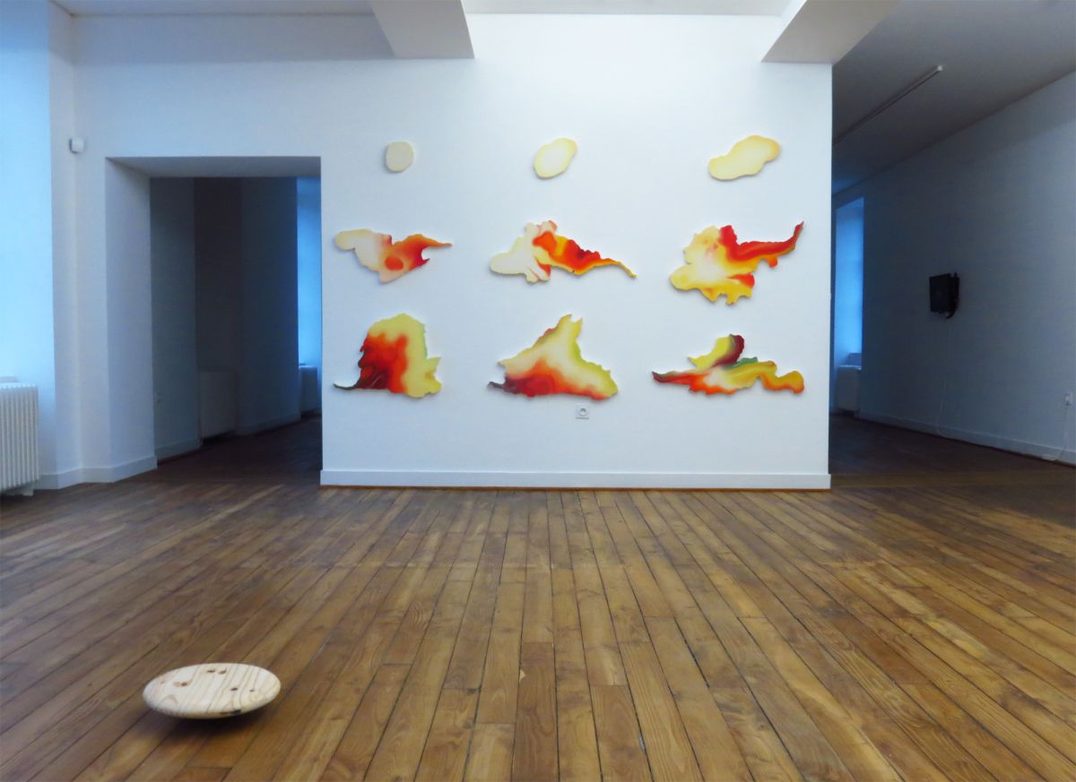 SpaceRuskinClouds, 2011. Acrylique sur toile montée sur bois, sept éléments, 180 x 230 cm